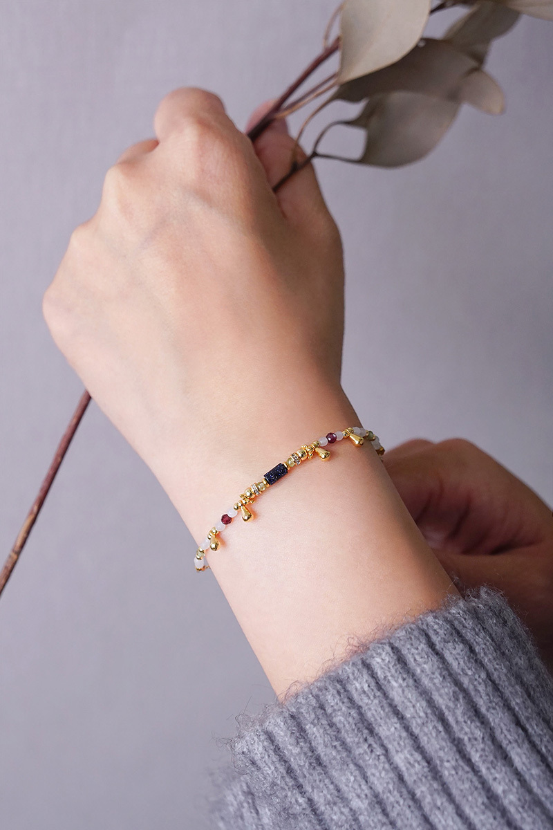 藍金沙、白瑪瑙、黃銅鍍18K金