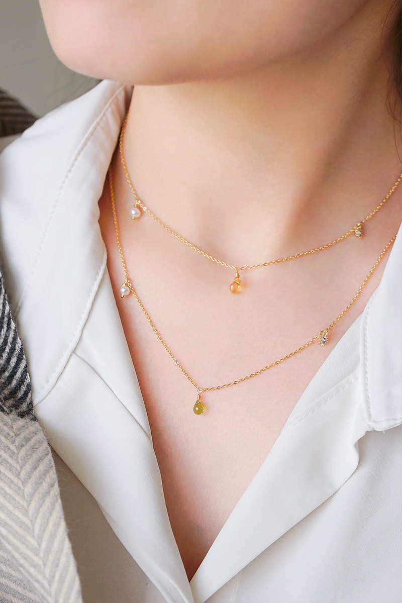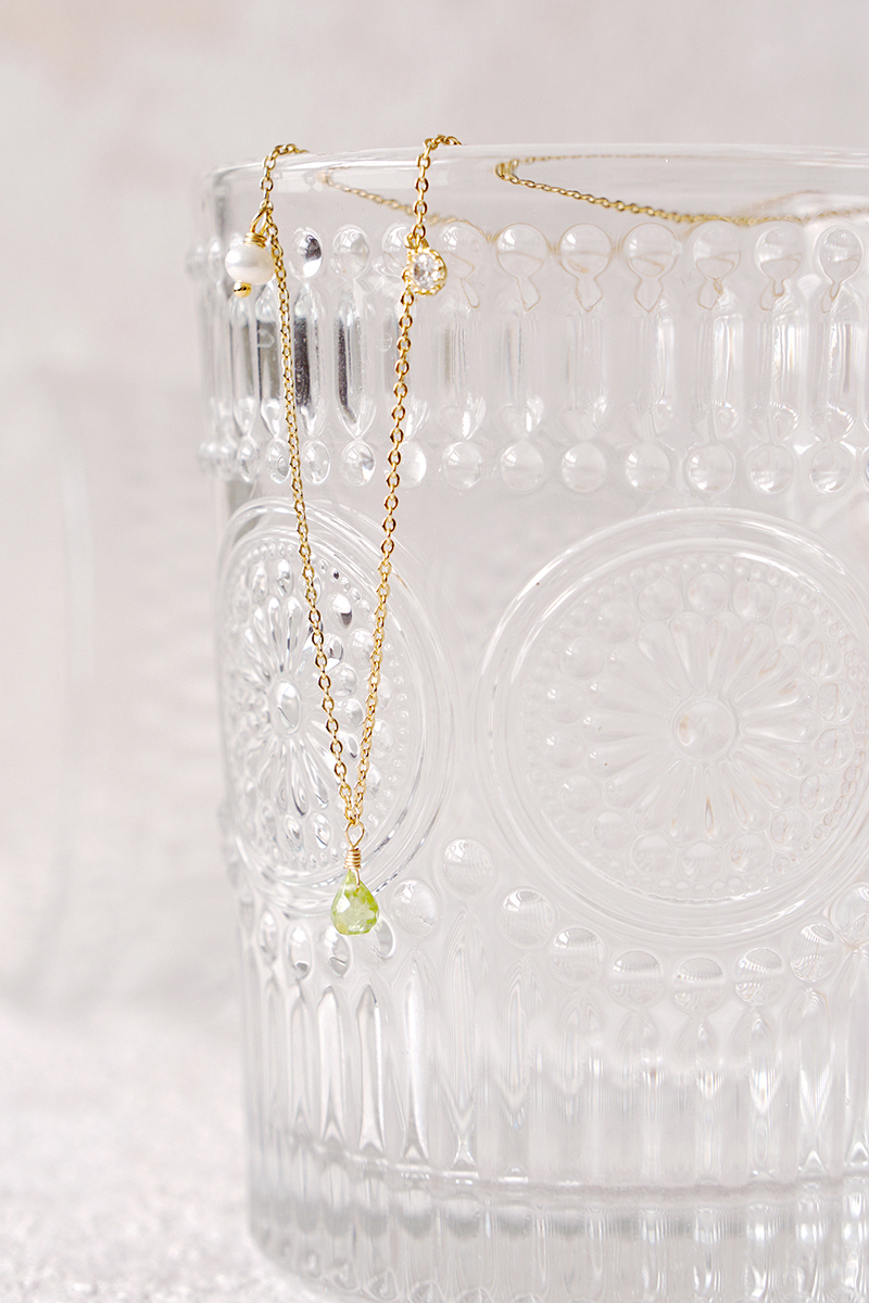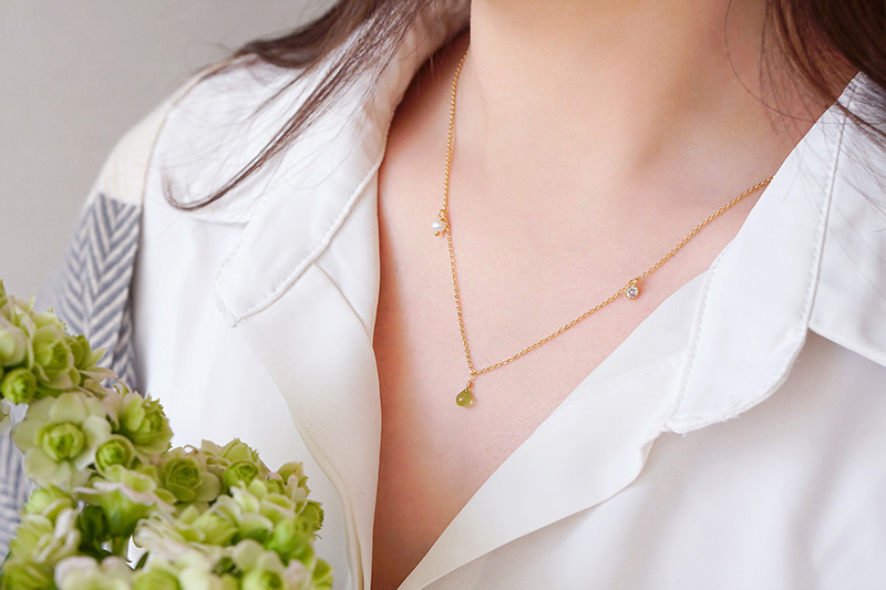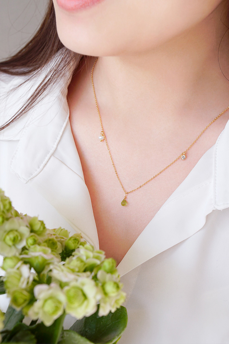 橄欖石、淡水珍珠、鋯石、黃銅鍍18K金