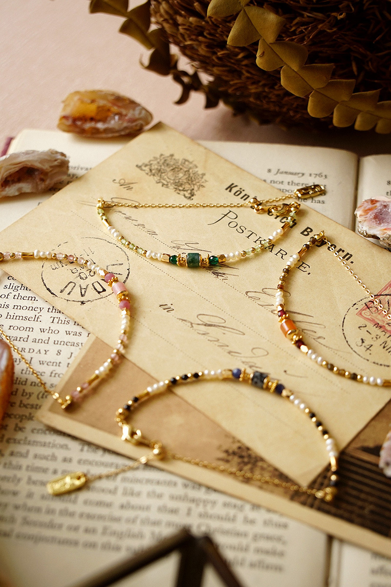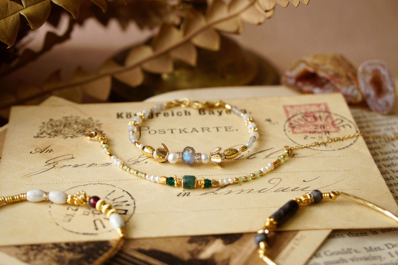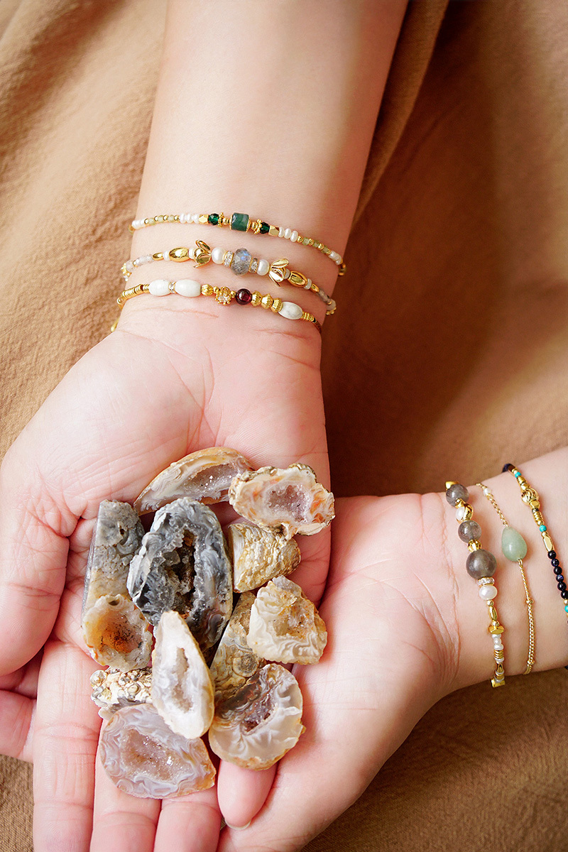 水草瑪瑙、祖母綠、橄欖石、黃銅鍍18K金