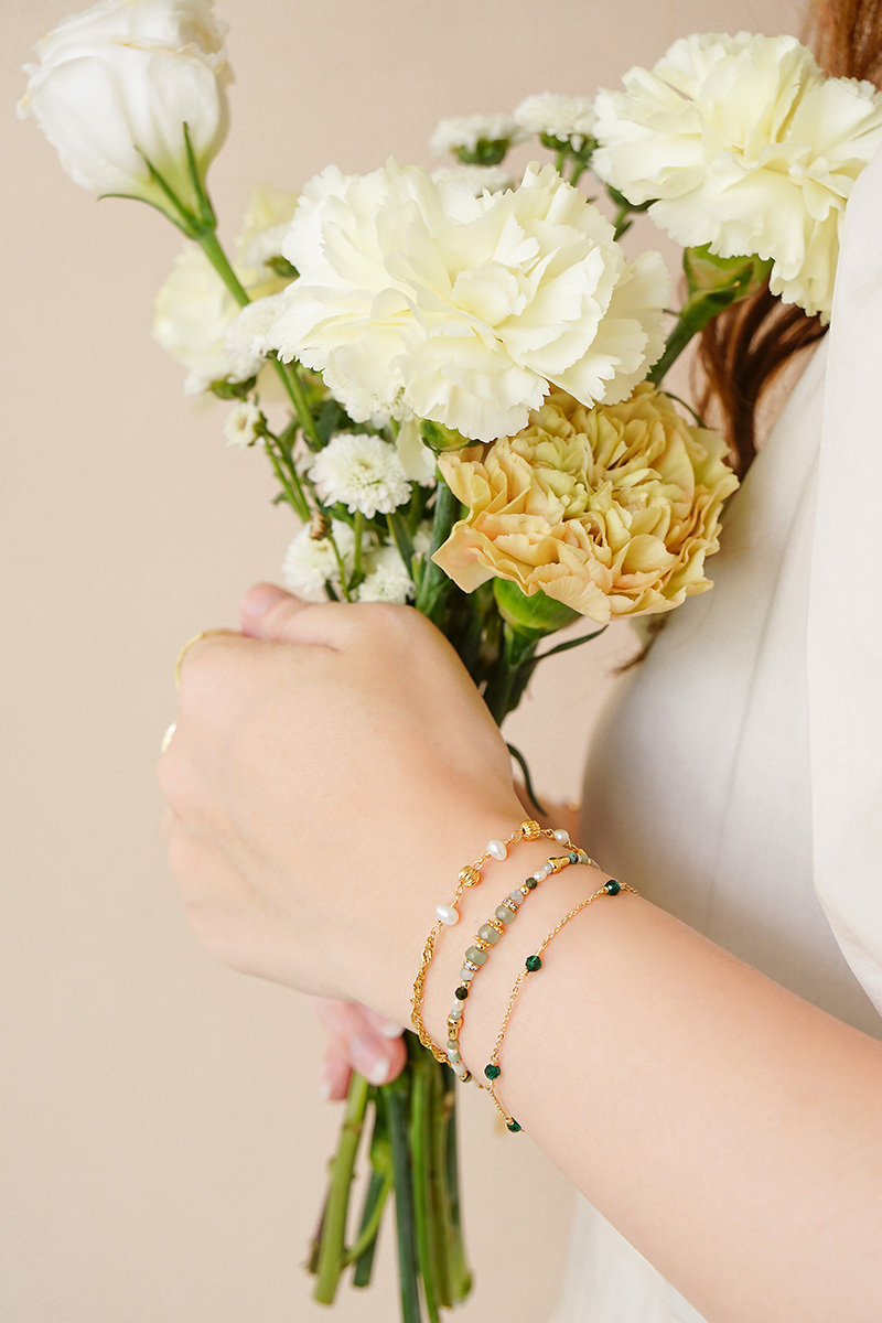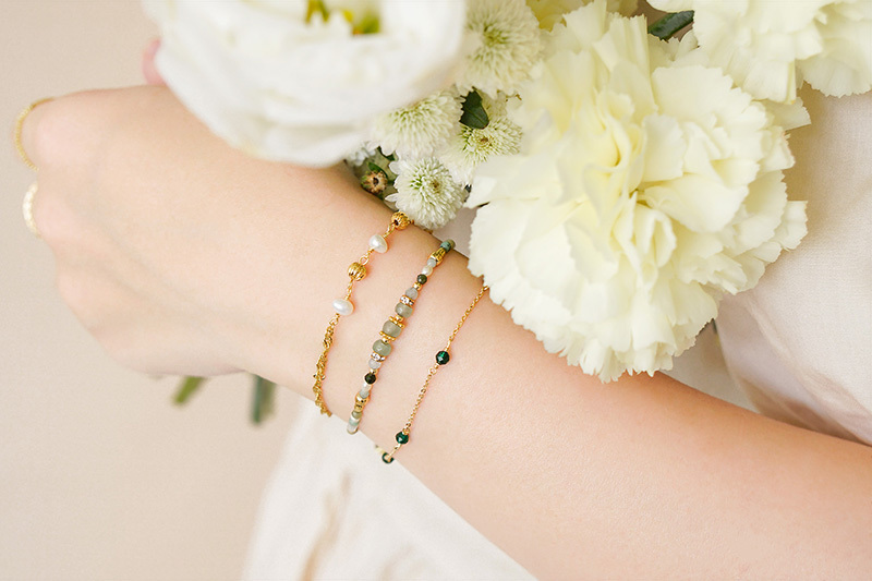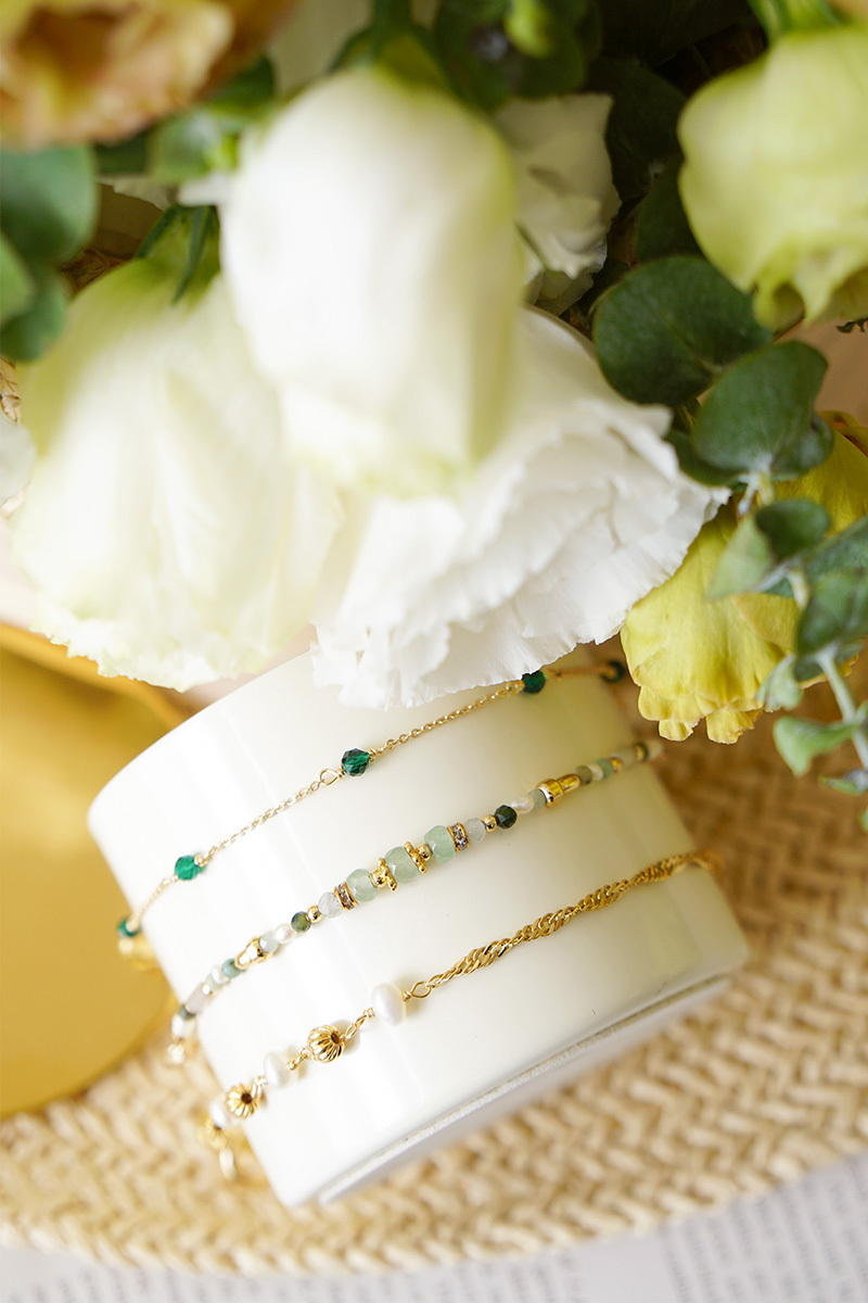 東陵玉、拉長石、綠碧璽、綠松石、黃銅鍍18K金