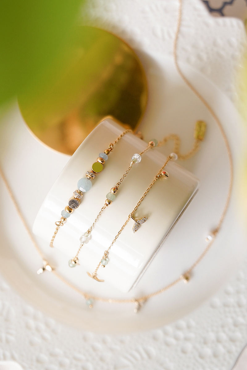 東陵玉、白水晶、橄欖石、黃銅鍍18K金