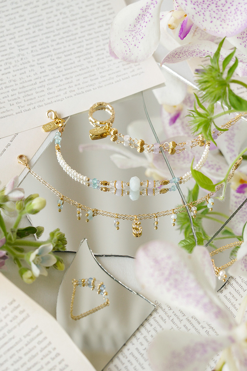 海藍寶、白水晶、磷灰石、黃銅鍍18K金