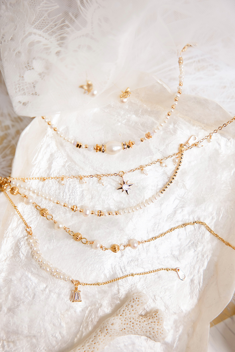 珍珠、藍紋瑪瑙、丹泉石、蘇打石、鋯石、黃銅鍍18K金