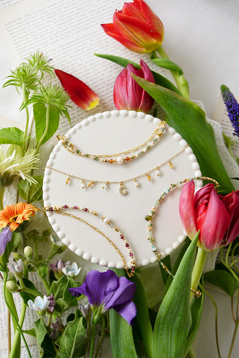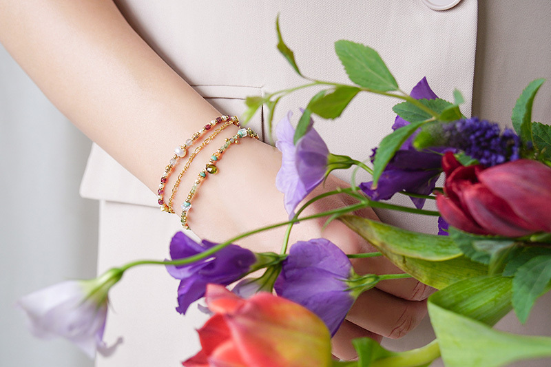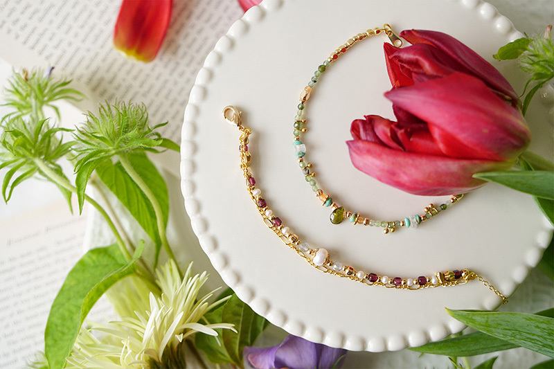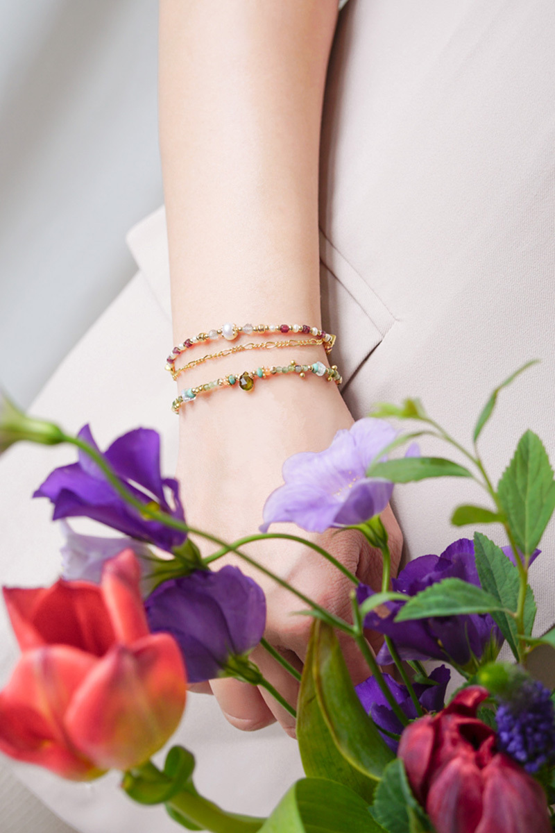 綠碧璽、綠松石、黃玉、月光石、黃銅鍍18K金