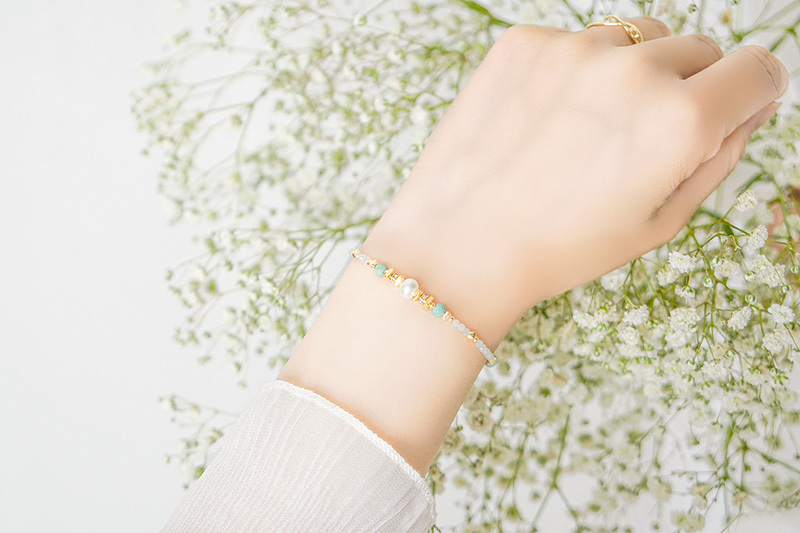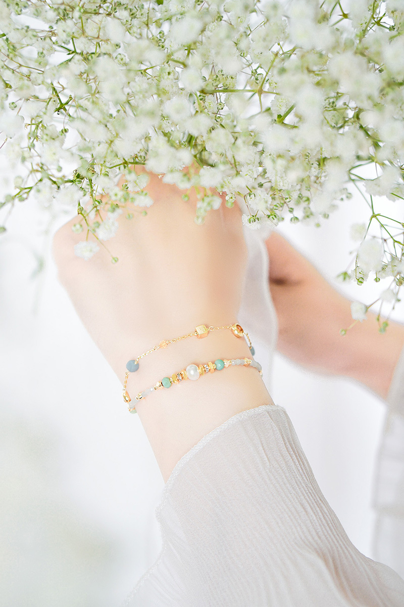 緬甸玉、綠松石、珍珠、黃銅鍍18K金