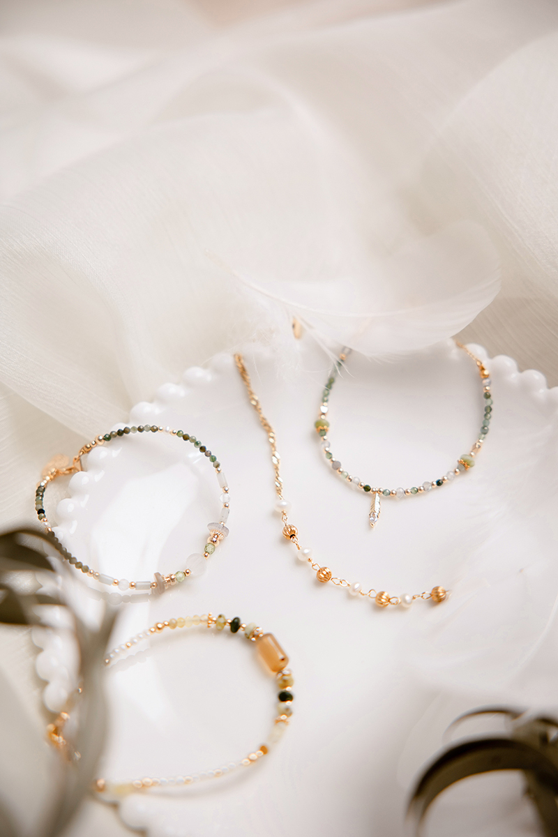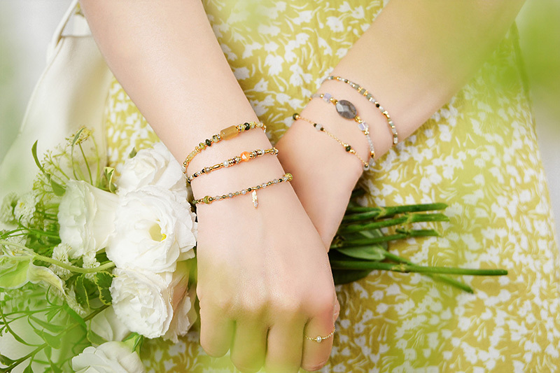 綠碧璽、拉長石、橄欖石、黃銅鍍18K金