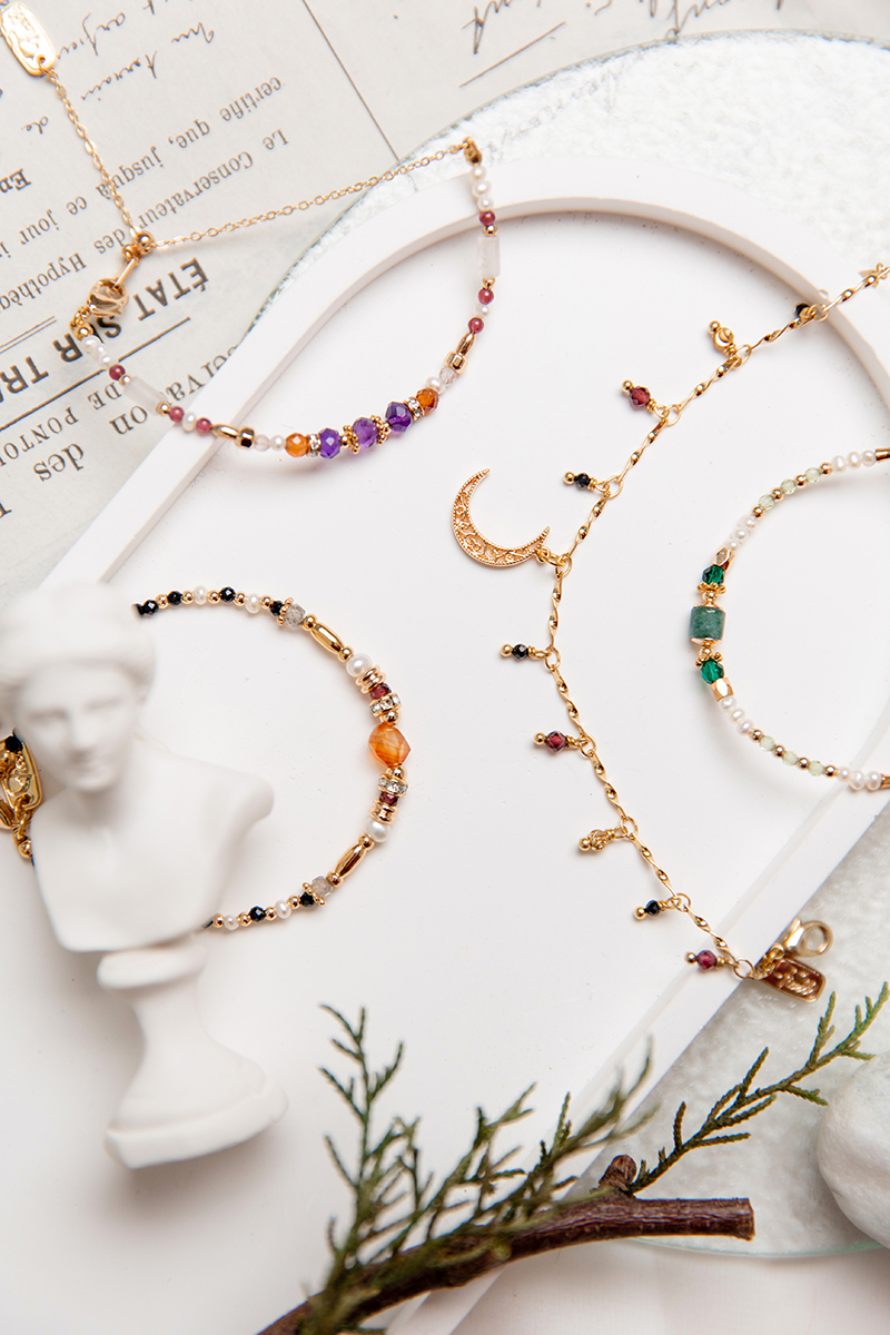 紫水晶、橙石榴石、石榴石、草莓晶、珍珠、黃銅鍍18K金