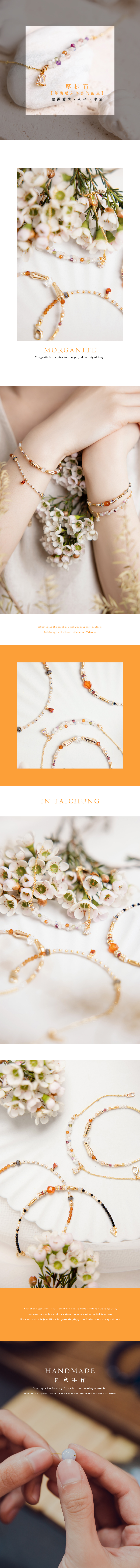 摩根石、紫水晶、橙石榴石、橄欖石、草莓晶、海藍寶、鋯石、黃銅鍍18K金