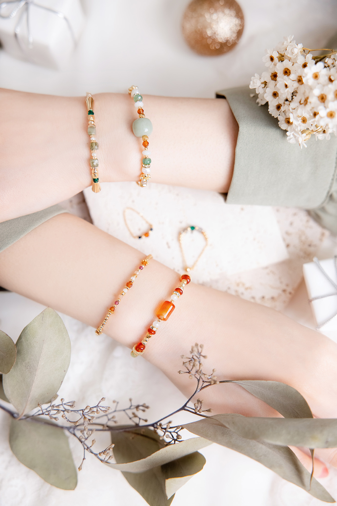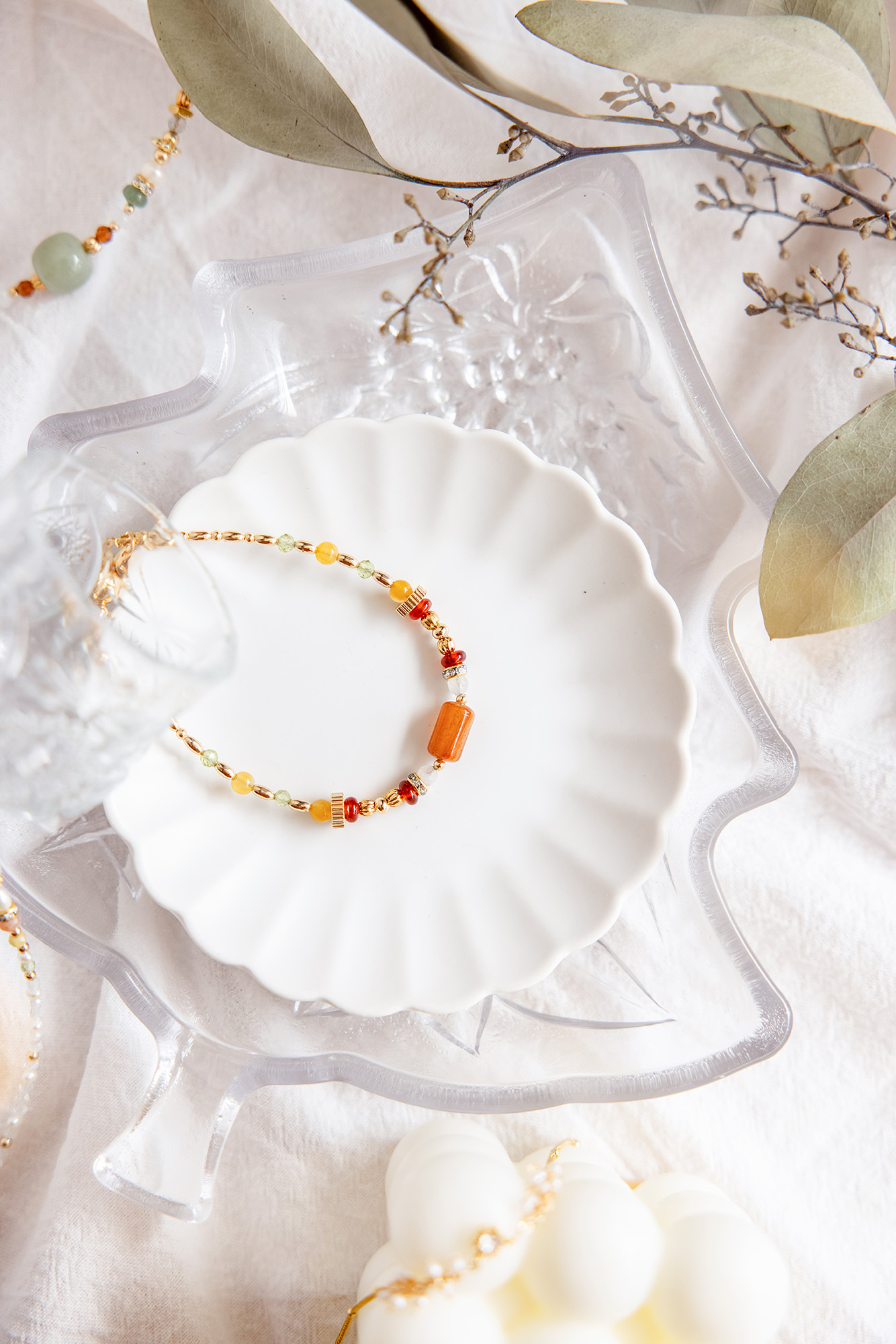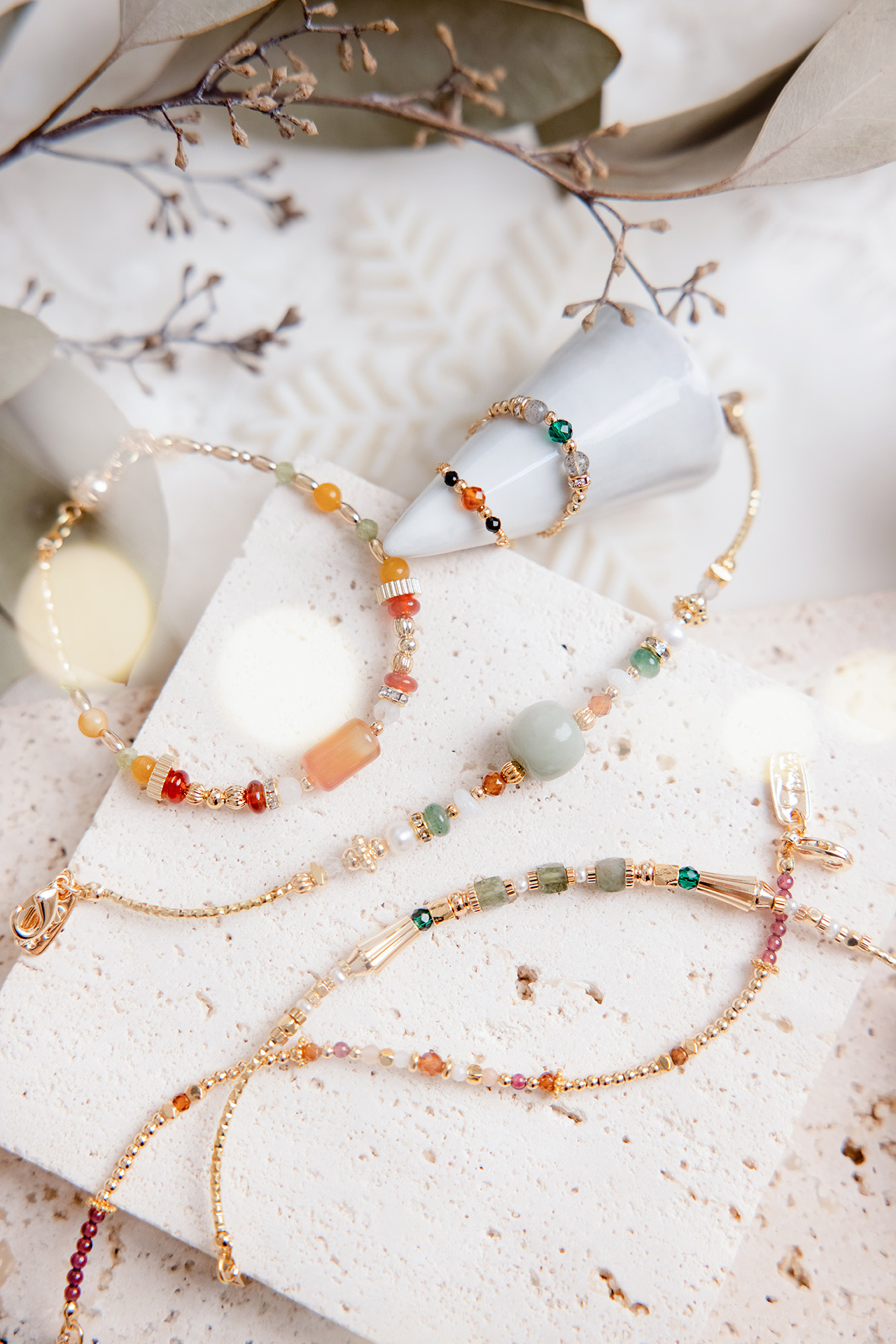 紅瑪瑙、黃玉、橄欖石、黃銅鍍18K金