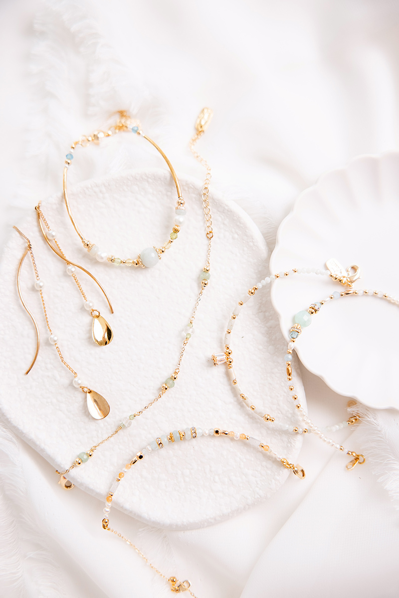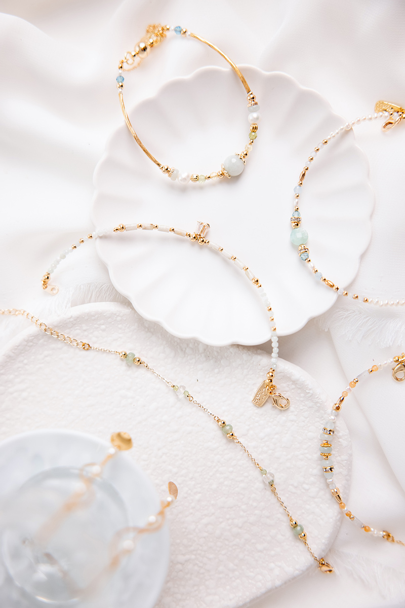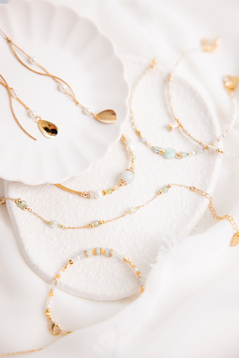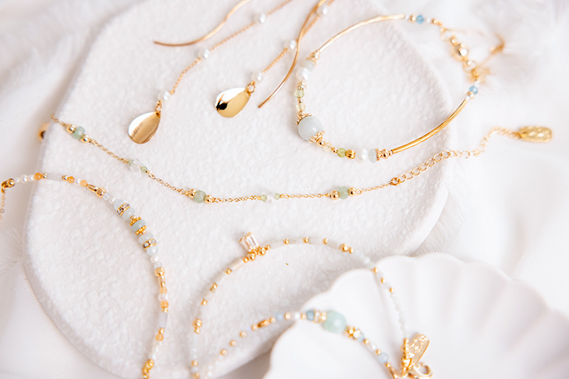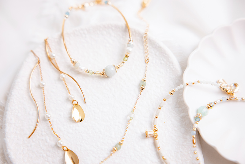 緬甸玉、橄欖石、淡水珍珠、東陵玉、黃銅鍍18K金