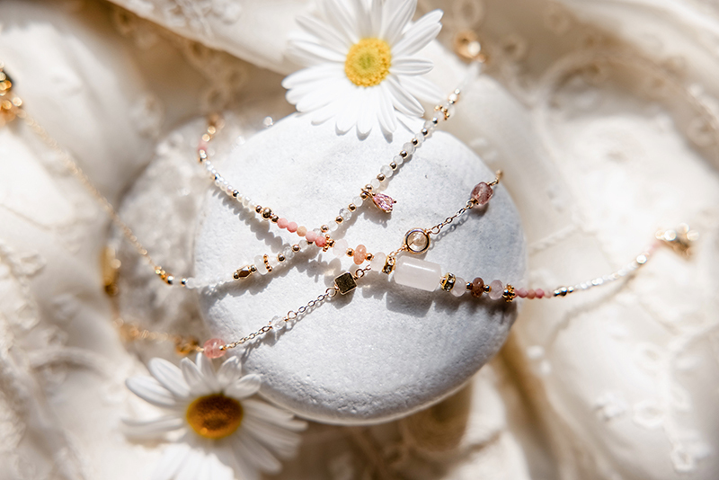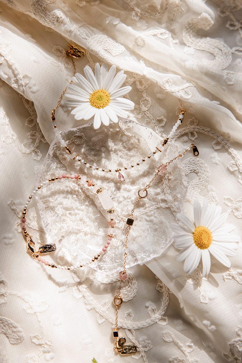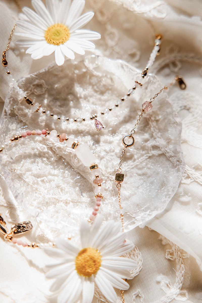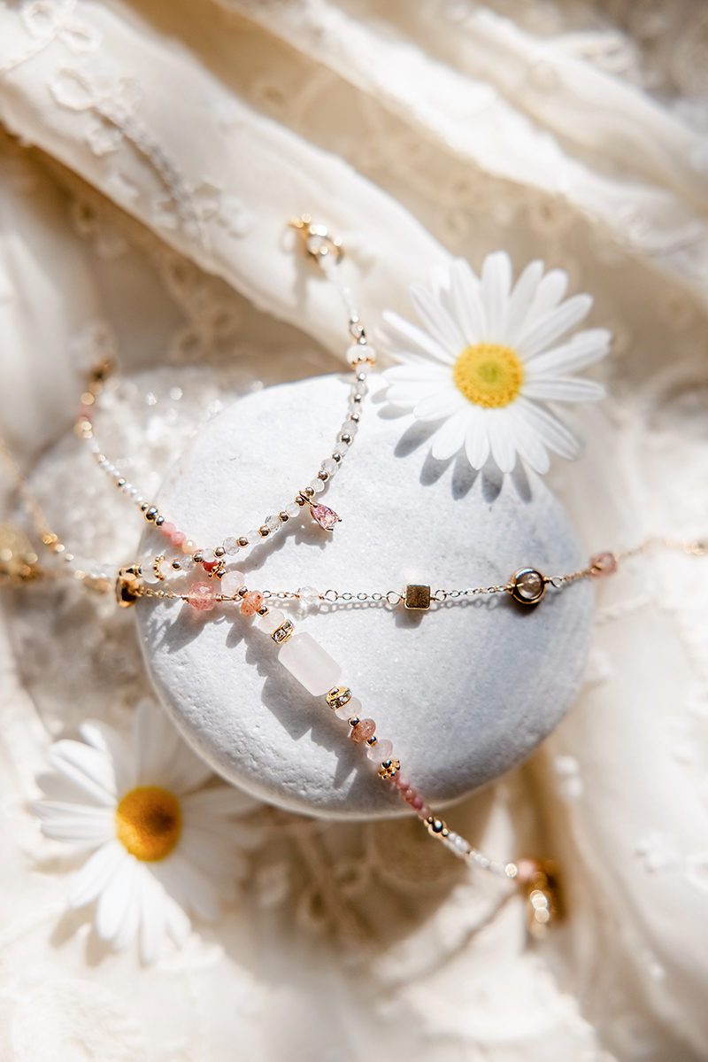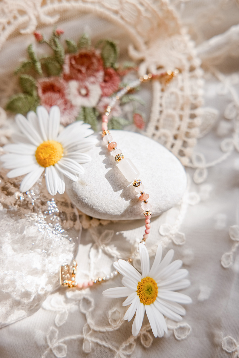 粉晶 Rose Quartz:為愛情石,有助於改善異性緣及人際關係;具有增加靈感與美感的能量。
