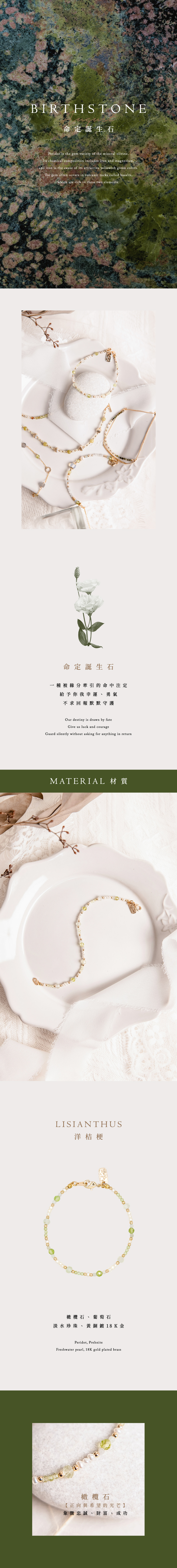 橄欖石、葡萄石、淡水珍珠、緬甸玉、黃銅鍍18K金
