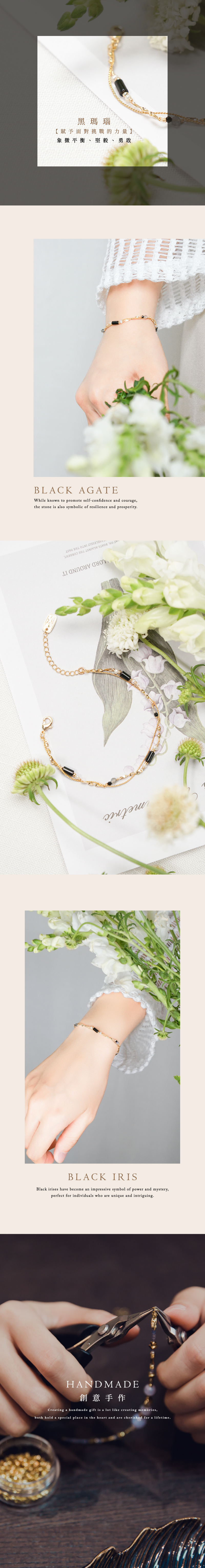 黑瑪瑙 Black Agate:象徵堅毅,使人客觀超然,不至於在複雜的環境中迷失方向,且增加信心。