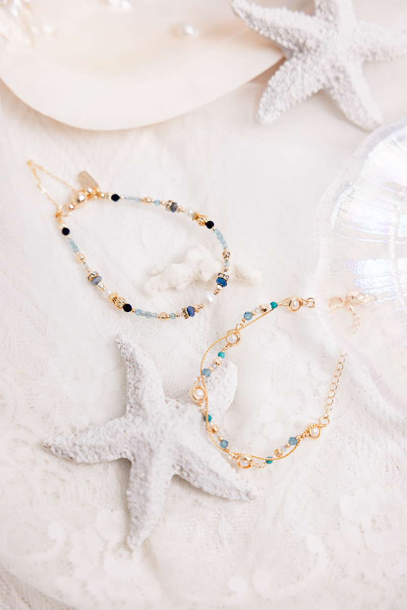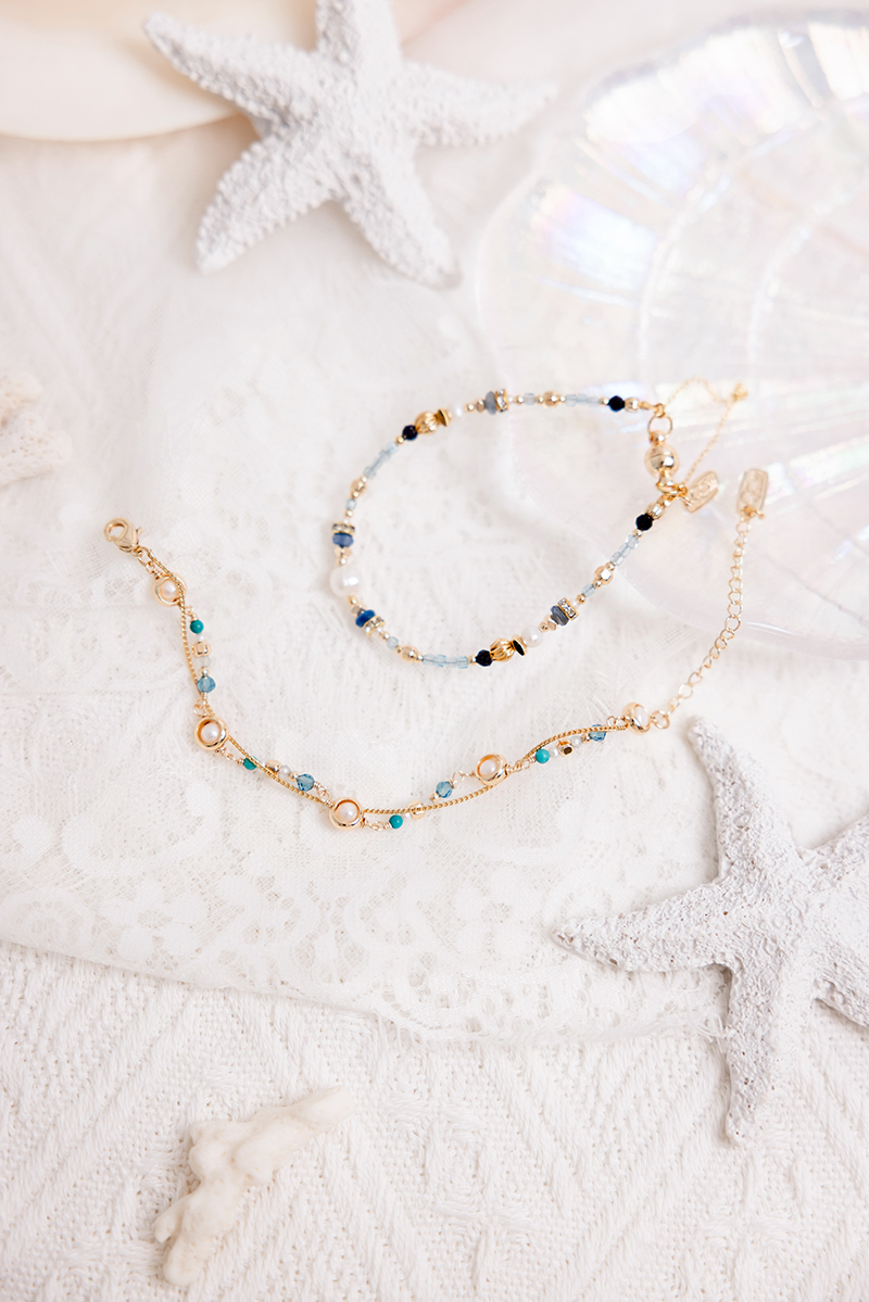 淡水珍珠、托帕石、海藍寶、綠松石、黃銅鍍18K金
