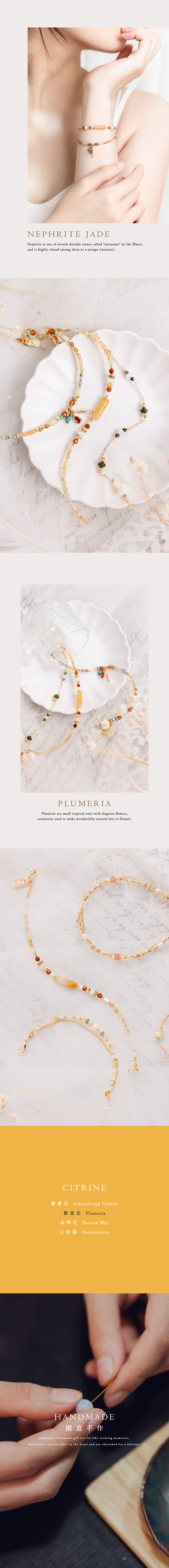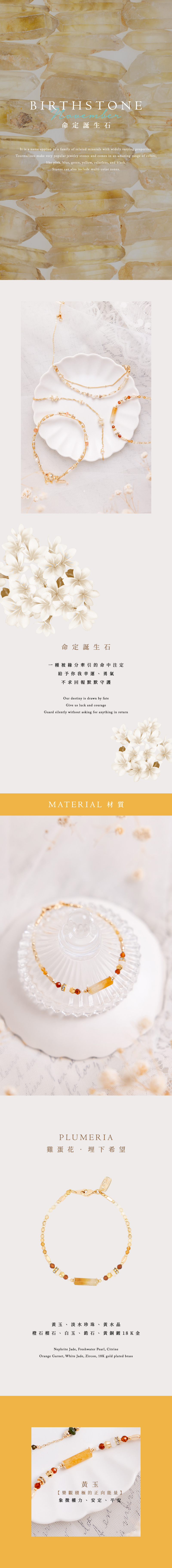 黃玉、淡水珍珠、橙石榴石、白玉、鋯石、黃銅鍍18K金
