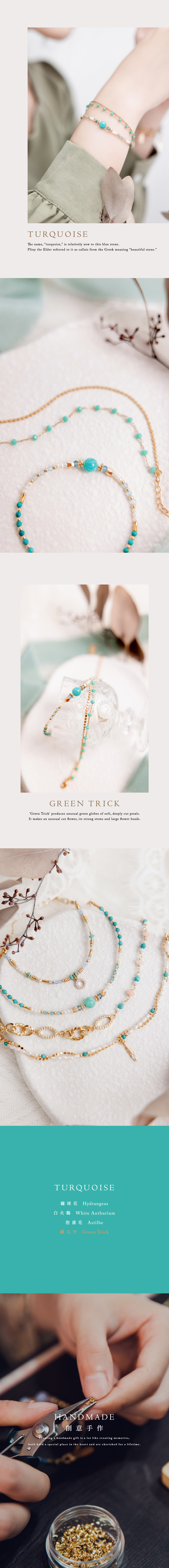 綠松石、淡水珍珠、磷灰石、托帕石、天河石、黃銅鍍18K金