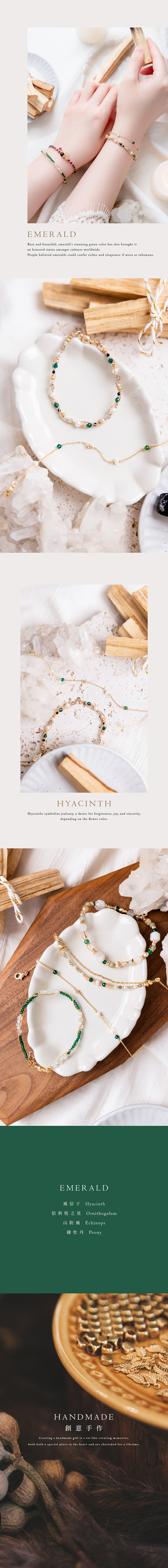 祖母綠 Emerald :象徵生命和希望,使人保持內在平衡,懂得包容與溫柔。