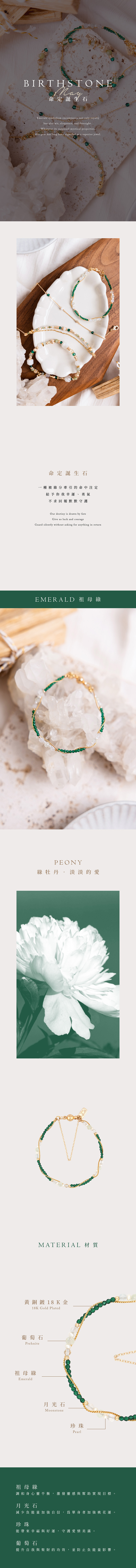 祖母綠、月光石、淡水珍珠、葡萄石、黃銅鍍18K金