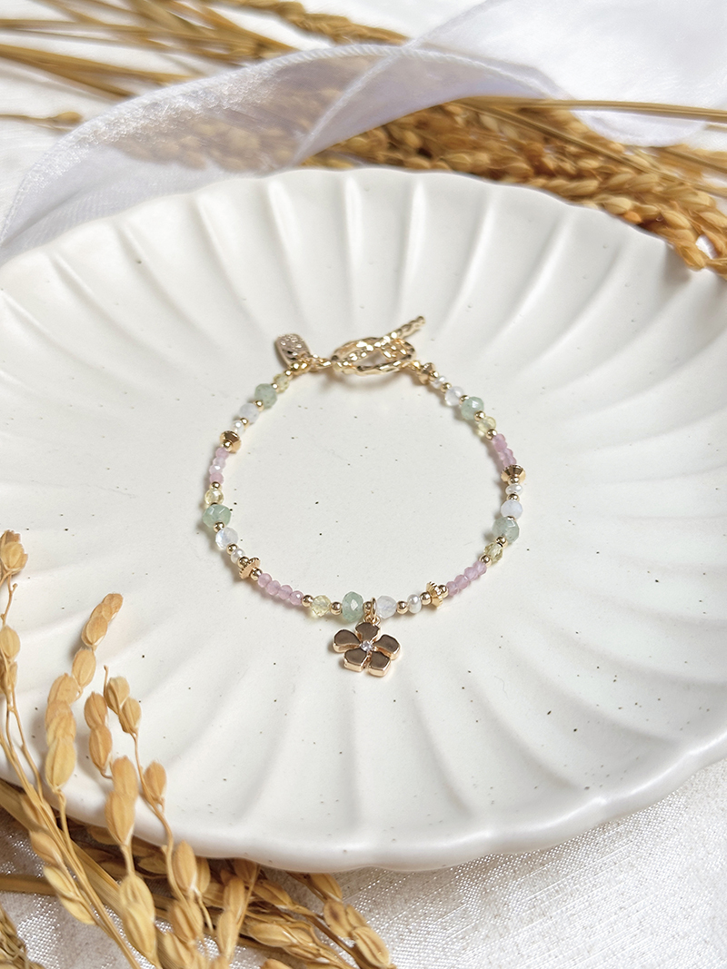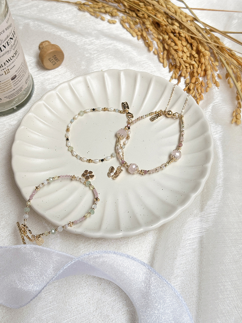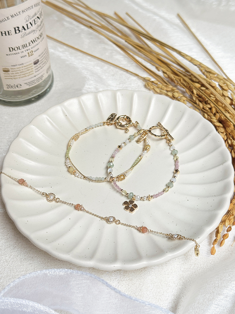 東陵玉、月光石、黃水晶、淡水珍珠、粉貓眼石、黃銅鍍18K金