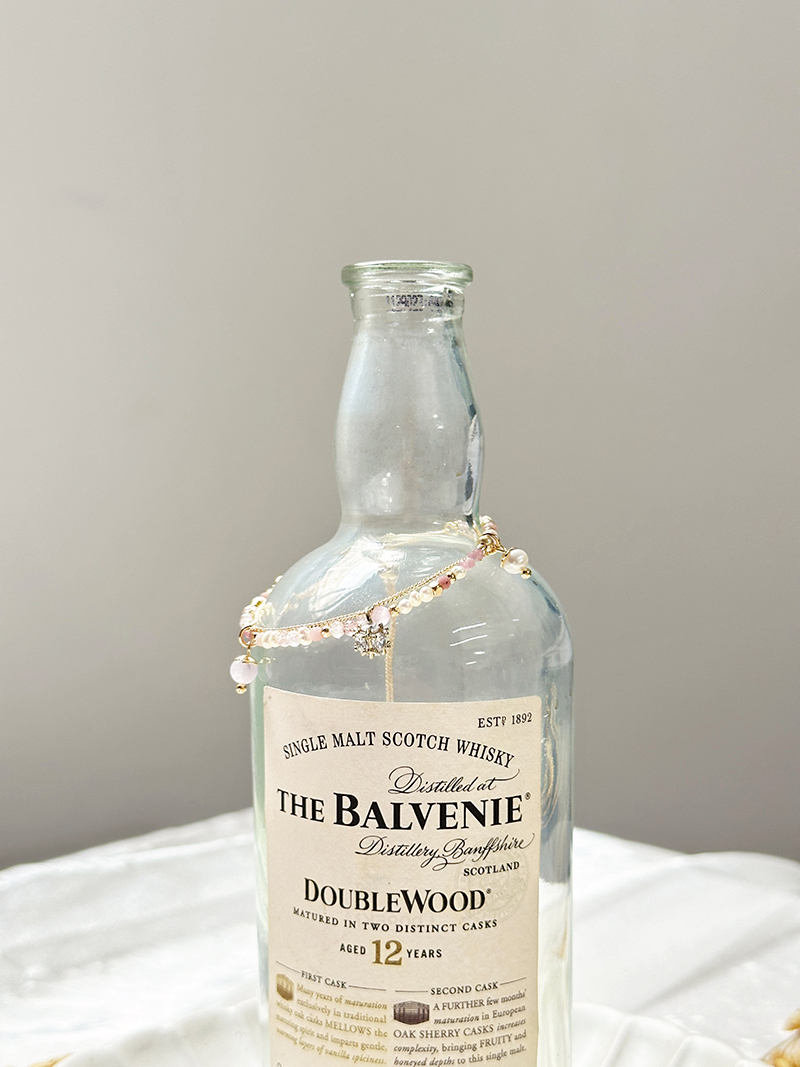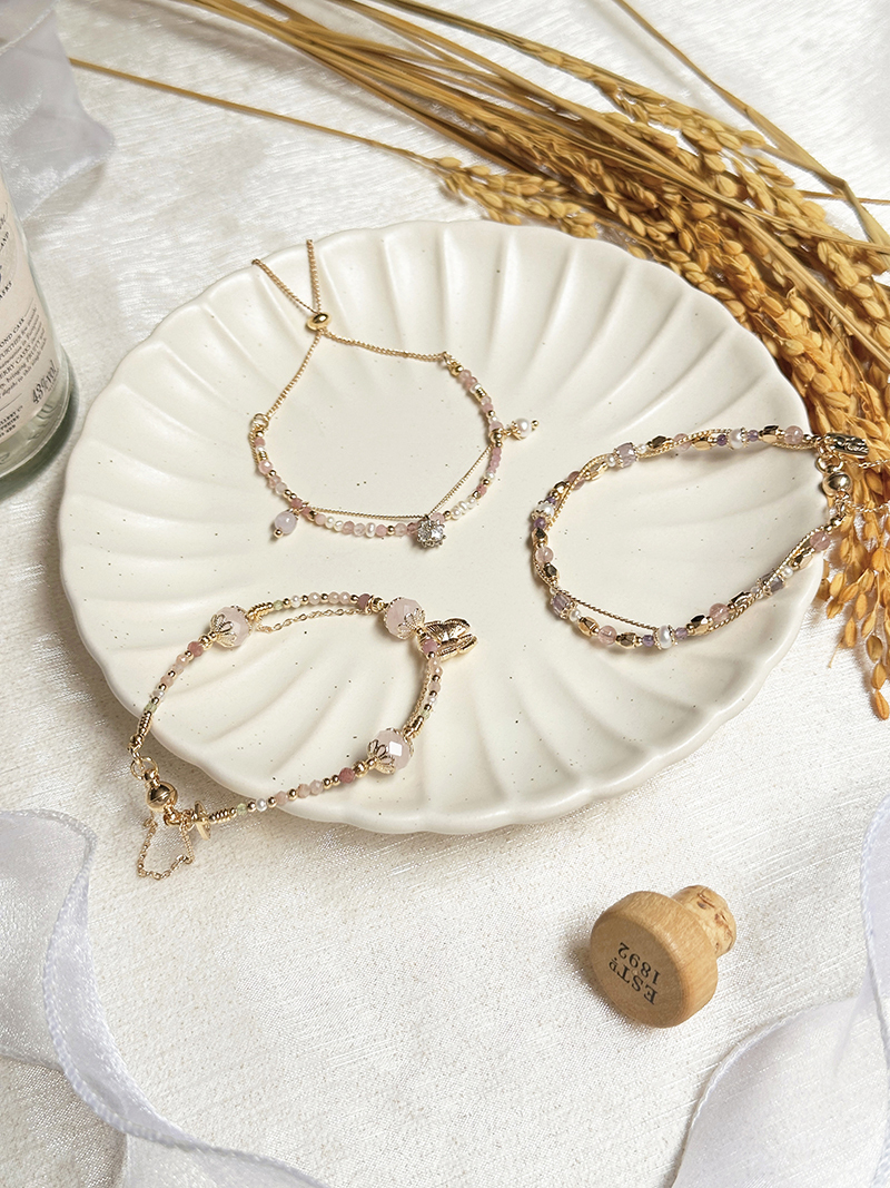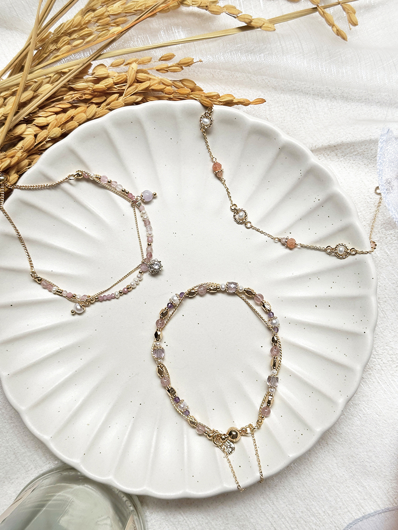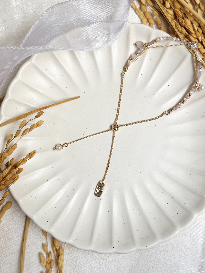 草莓晶、淡水珍珠、粉貓眼石、紅紋石、鋯石、黃銅鍍18K金
