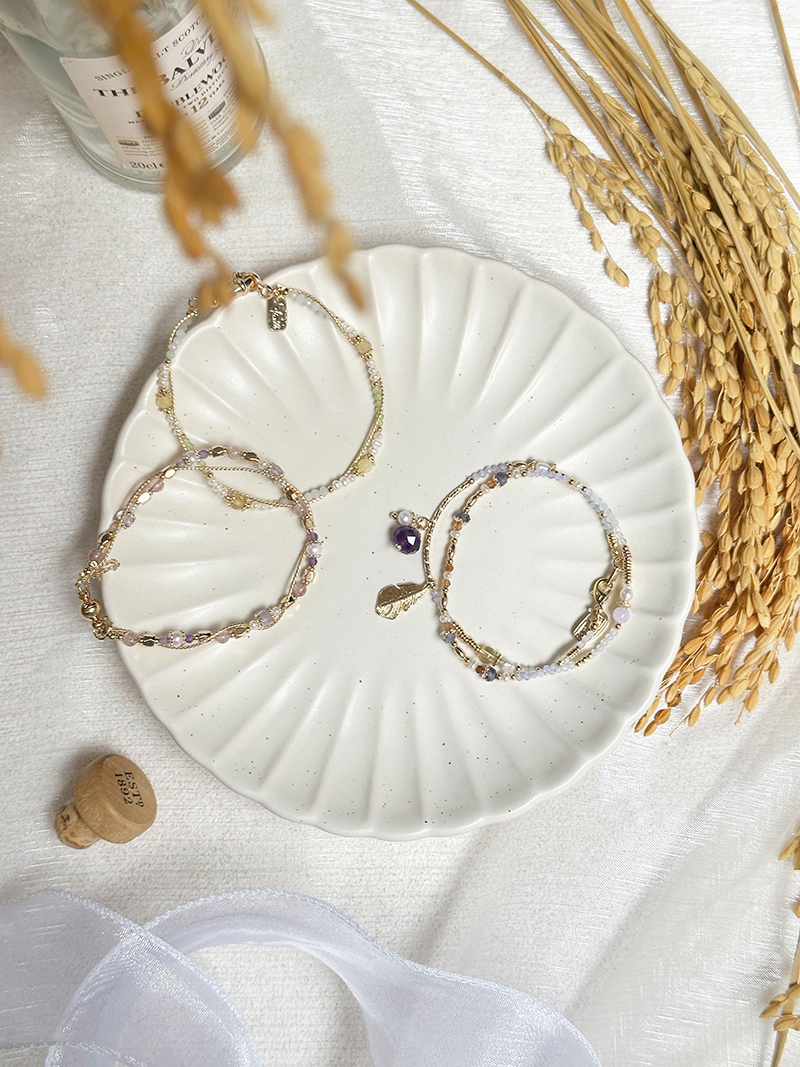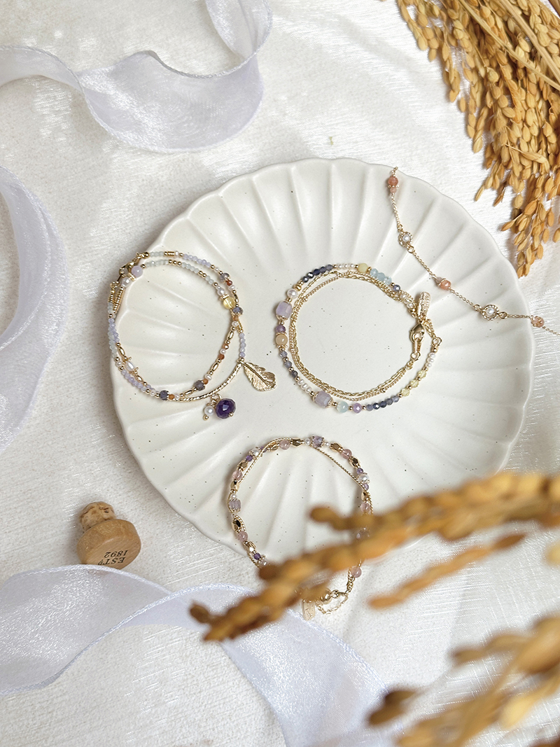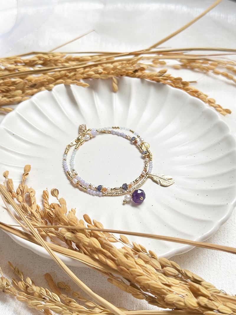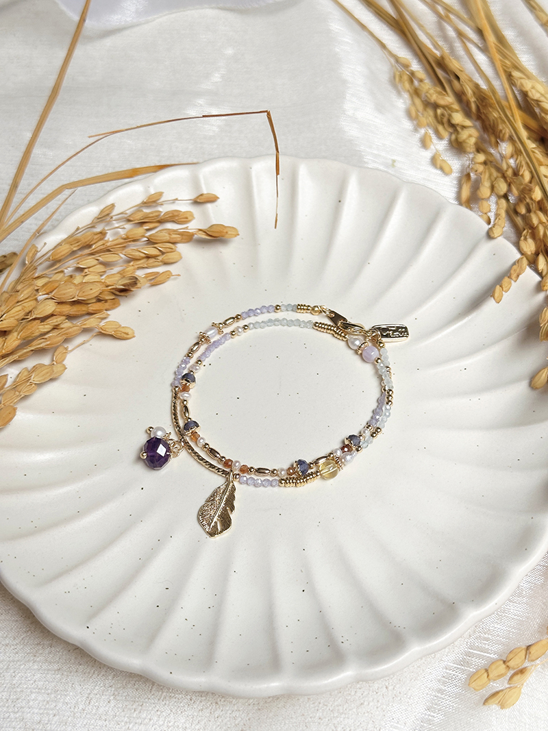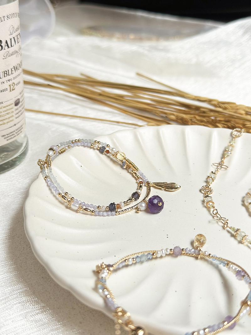 紫水晶、淡水珍珠、紫鋯石、黃水晶、堇青石、橙石榴石、海藍寶、黃銅鍍18K金