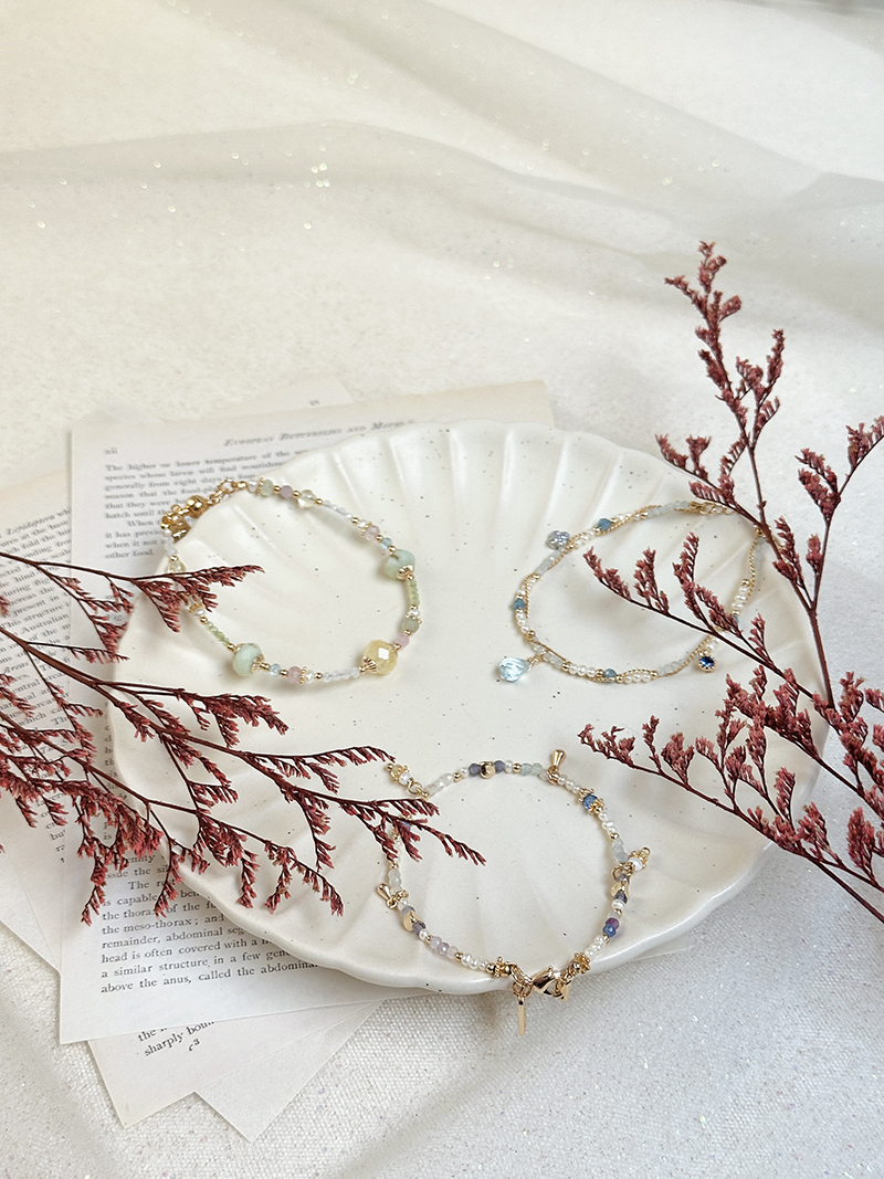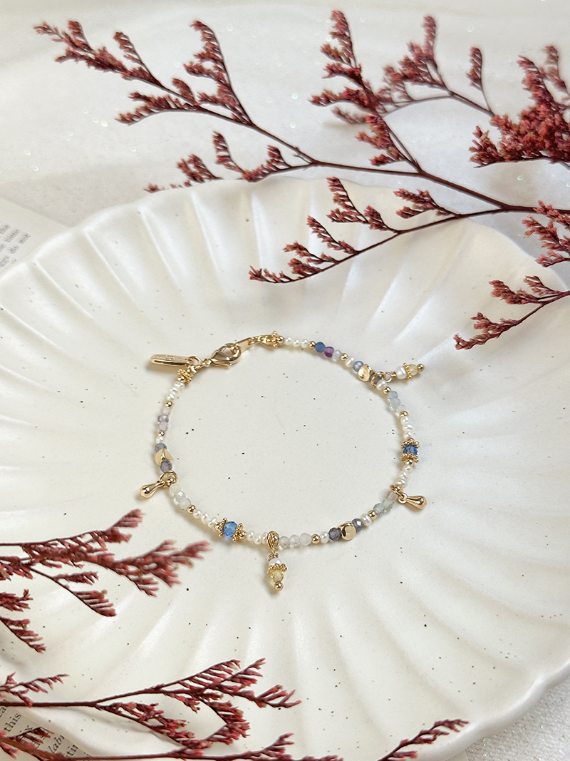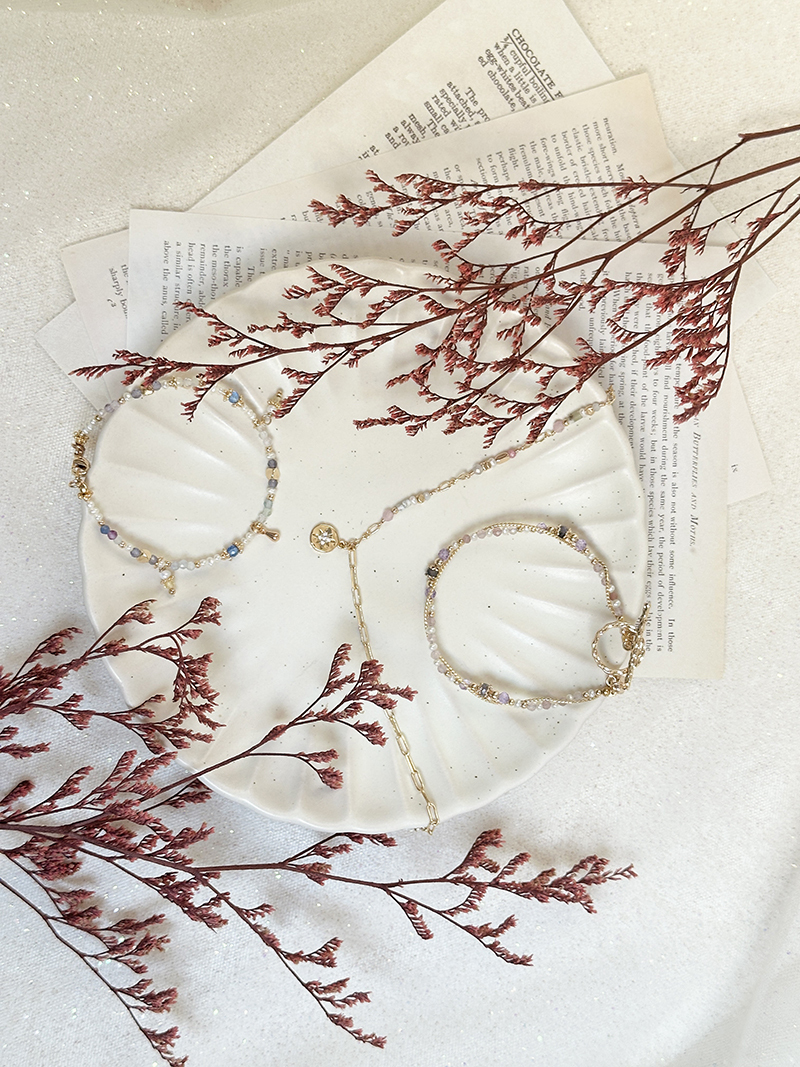 堇青石、瑩石、托帕石、淡水珍珠、黃水晶、黃銅鍍18K金