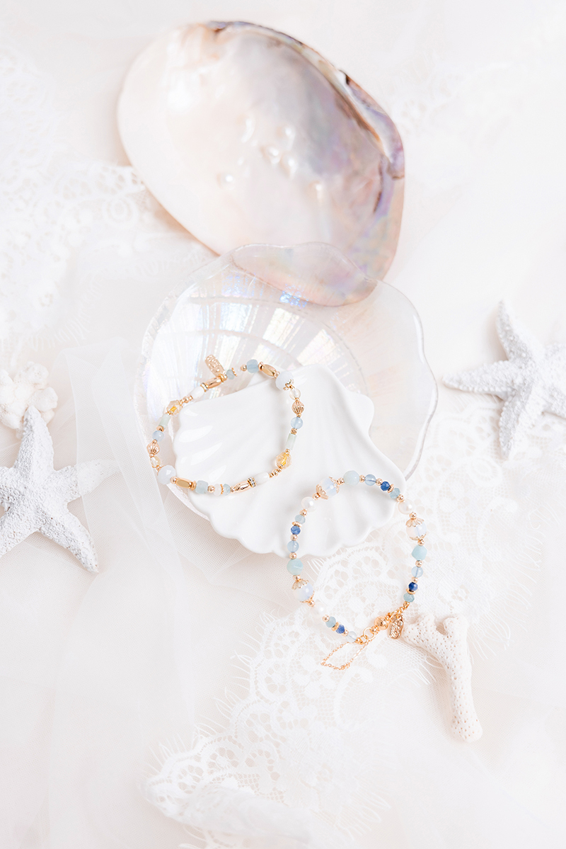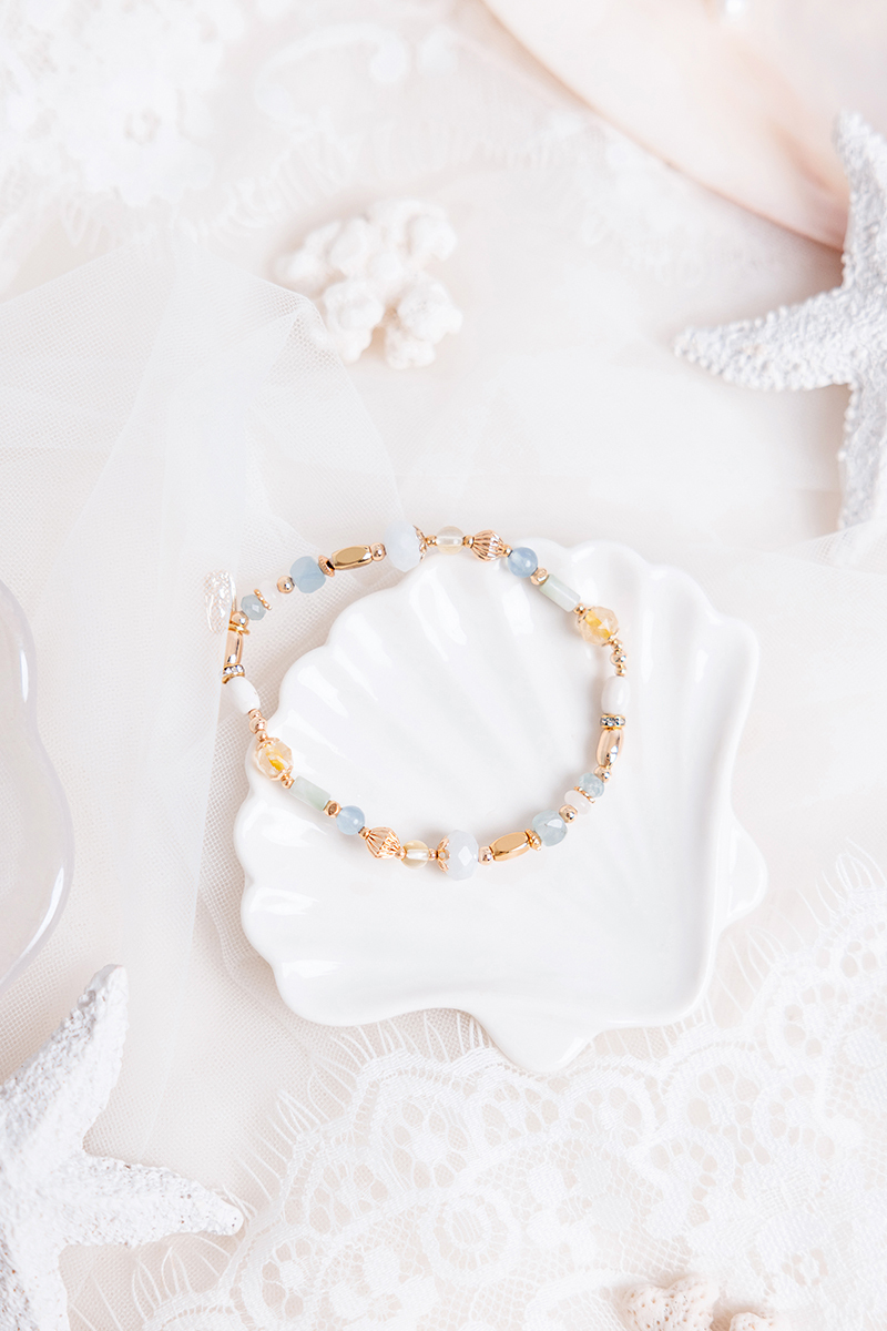 海藍寶、黃水晶、白紋石、白玉、海藍玉髓、祥和石、黃銅鍍18K金