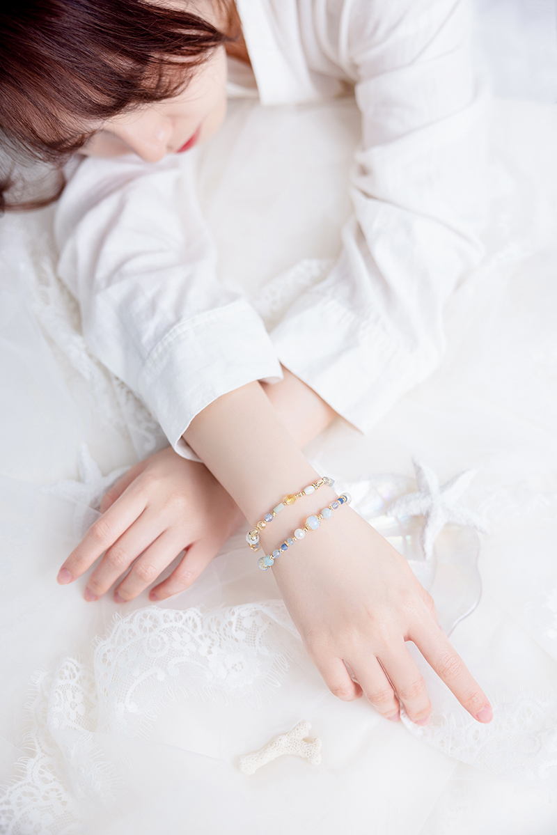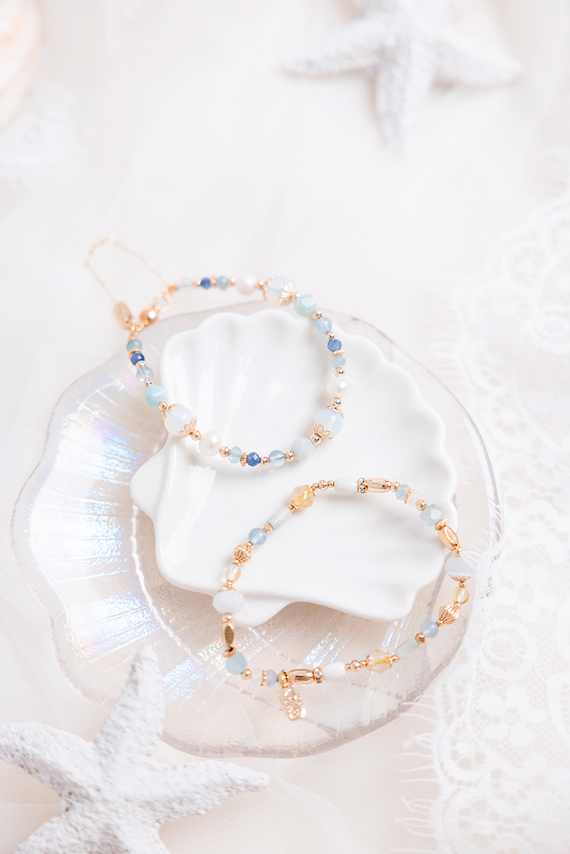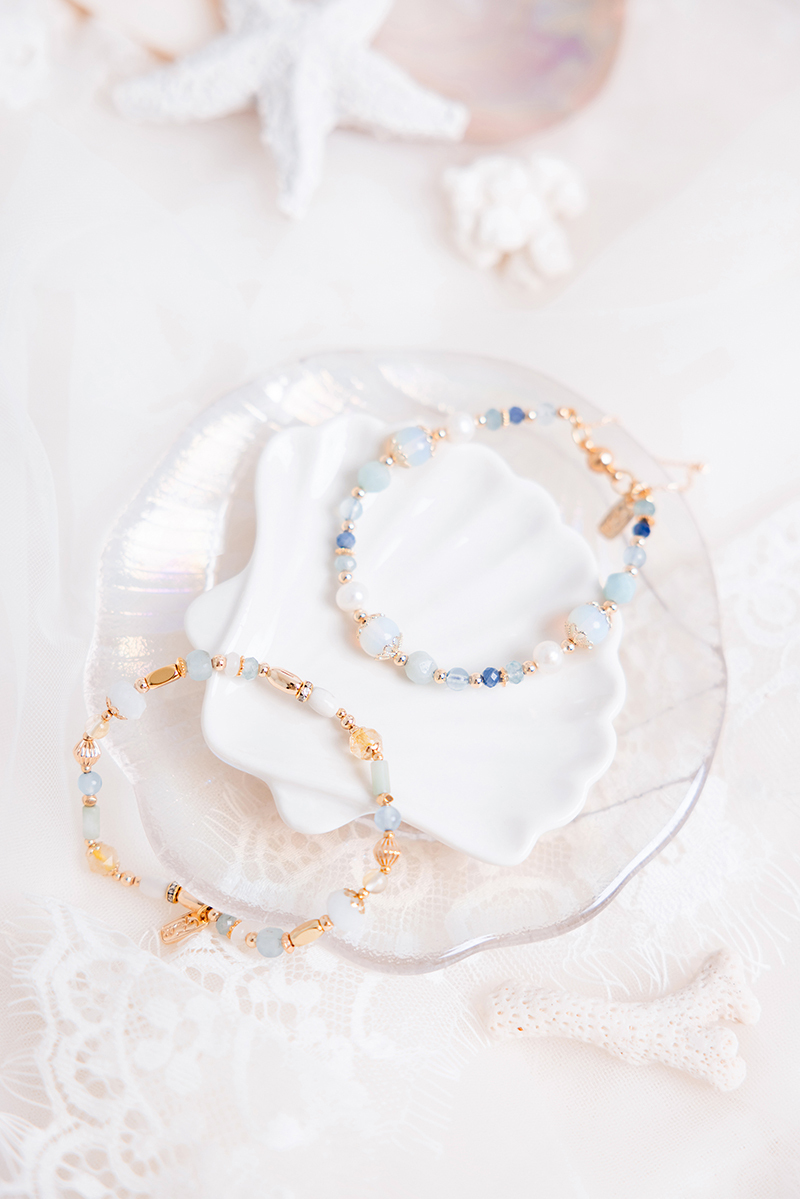 蛋白石、天河石、淡水珍珠、海藍玉髓、藍晶石、海藍寶、黃銅鍍18K金