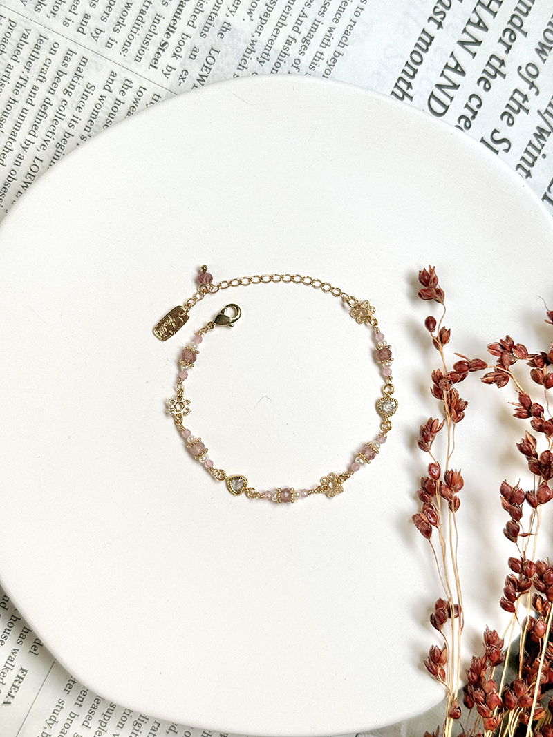 草莓晶、淡水珍珠、粉貓眼石、鋯石、黃銅鍍18K金