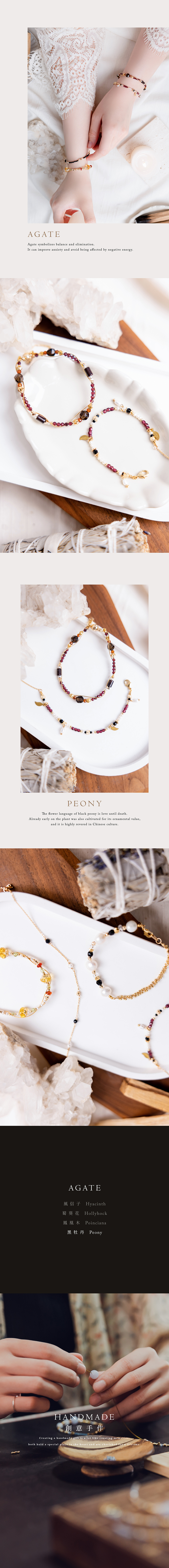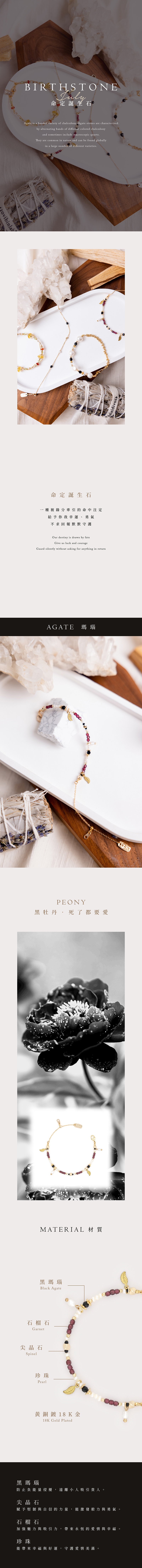 黑瑪瑙、尖晶石、淡水珍珠、石榴石、黃銅鍍18K金