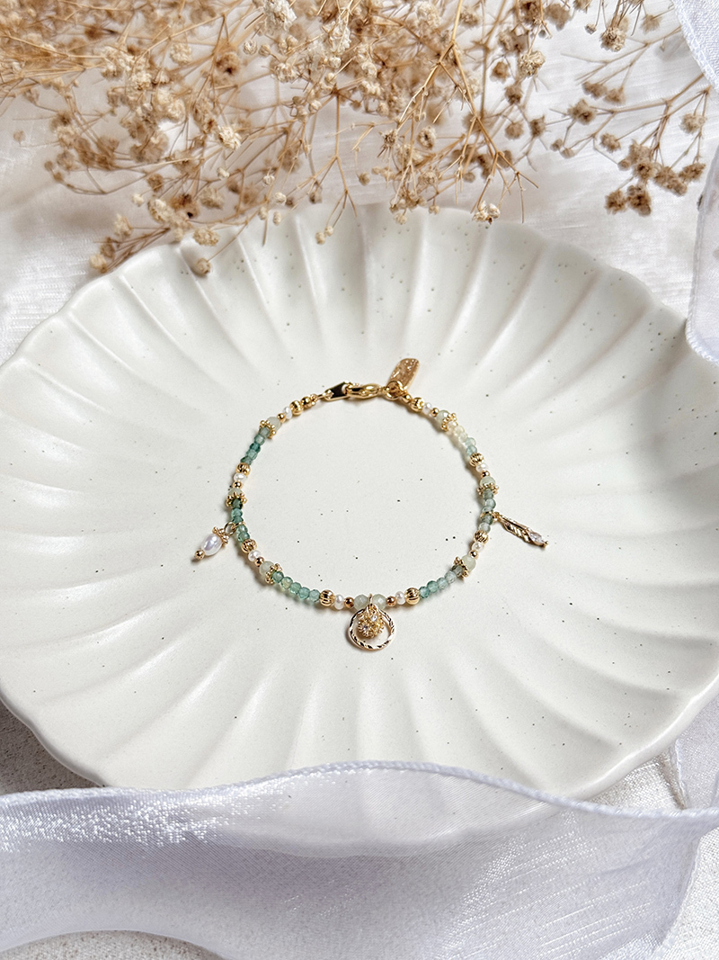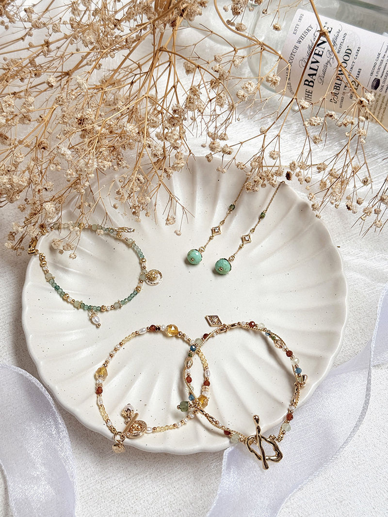 黃綠水晶、緬甸玉、淡水珍珠、鋯石、黃銅鍍18K金