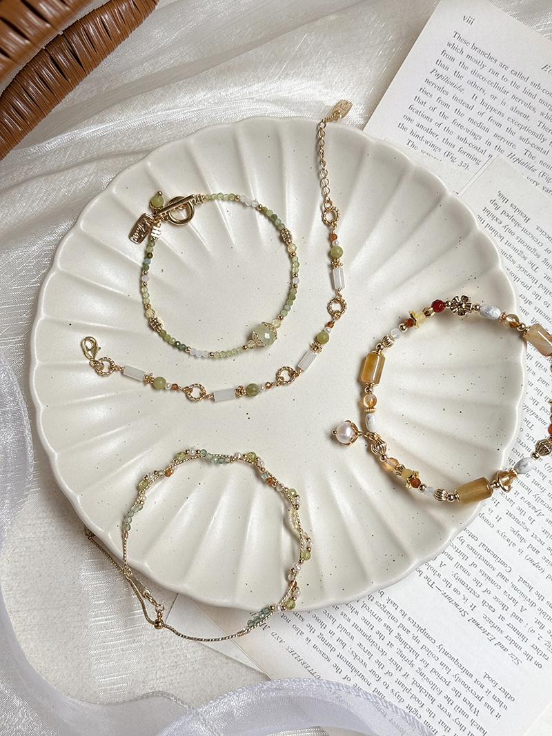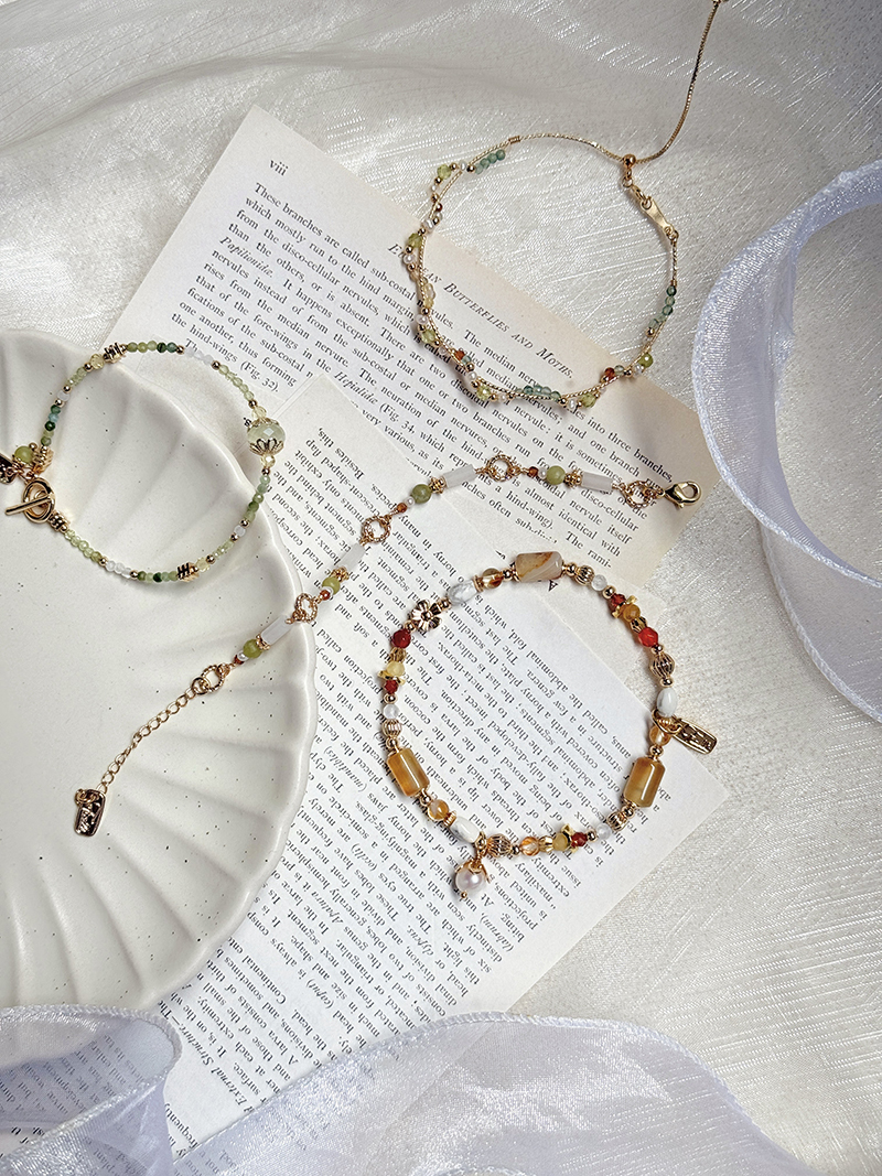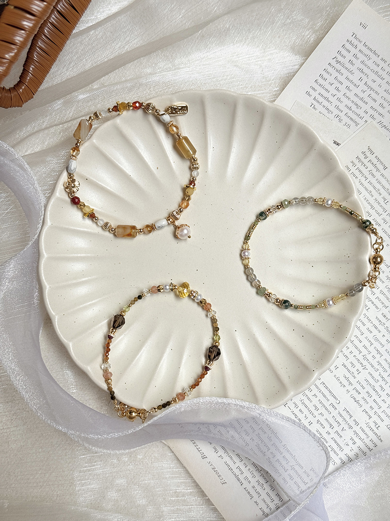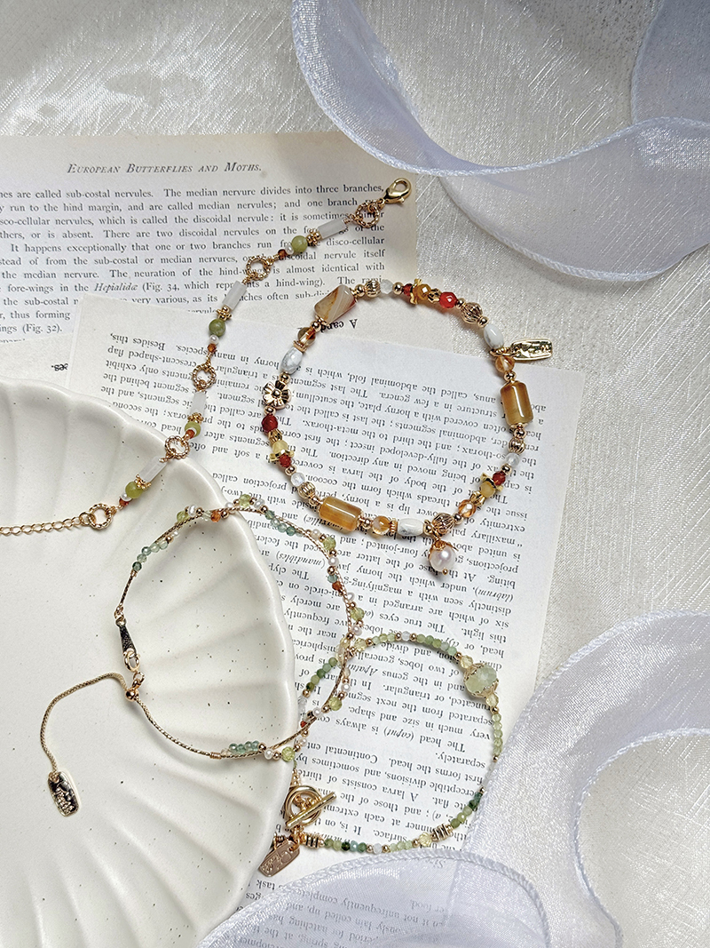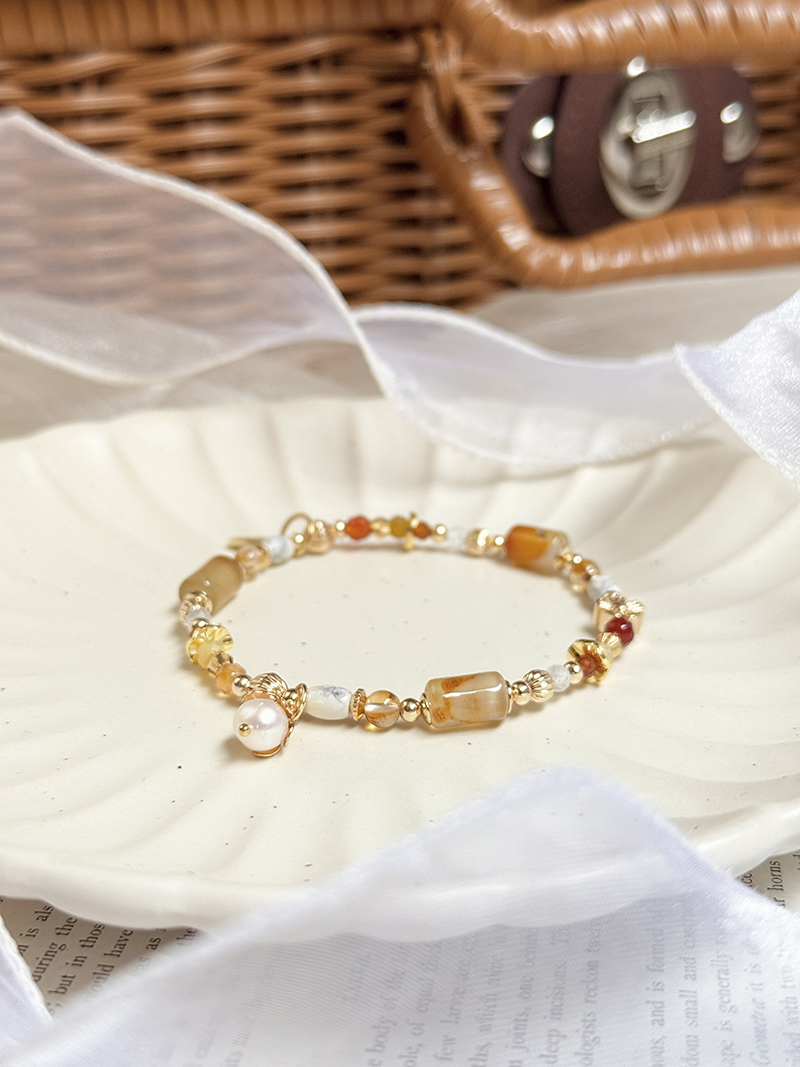 紅瑪瑙、黃水晶、白紋石、黃蛋白石、橙石榴石、月光石、淡水珍珠、黃銅鍍18K金
