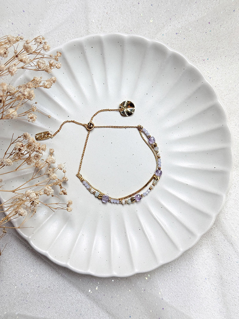 紫水晶、紫鋯石、淡水珍珠、緬甸玉、黃銅鍍18K金