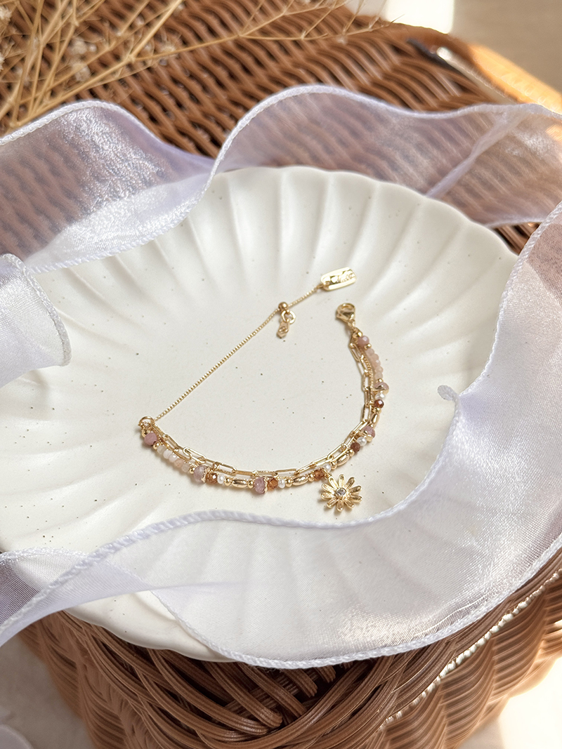 草莓晶、橙石榴石、淡水珍珠、太陽石、紅紋石、黃銅鍍18K金