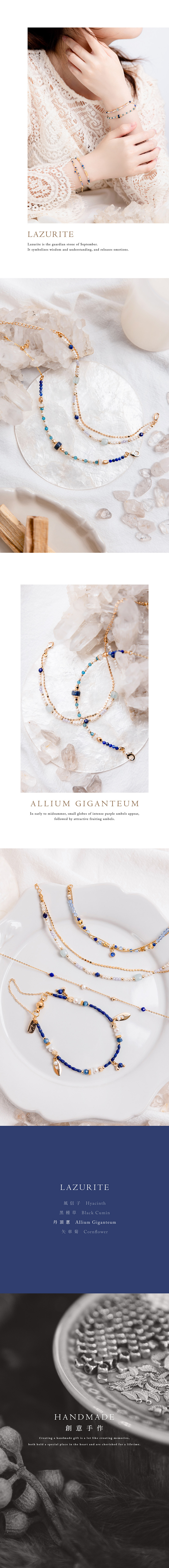 青金石、海藍寶、淡水珍珠、紫鋯石、黃銅鍍18K金
