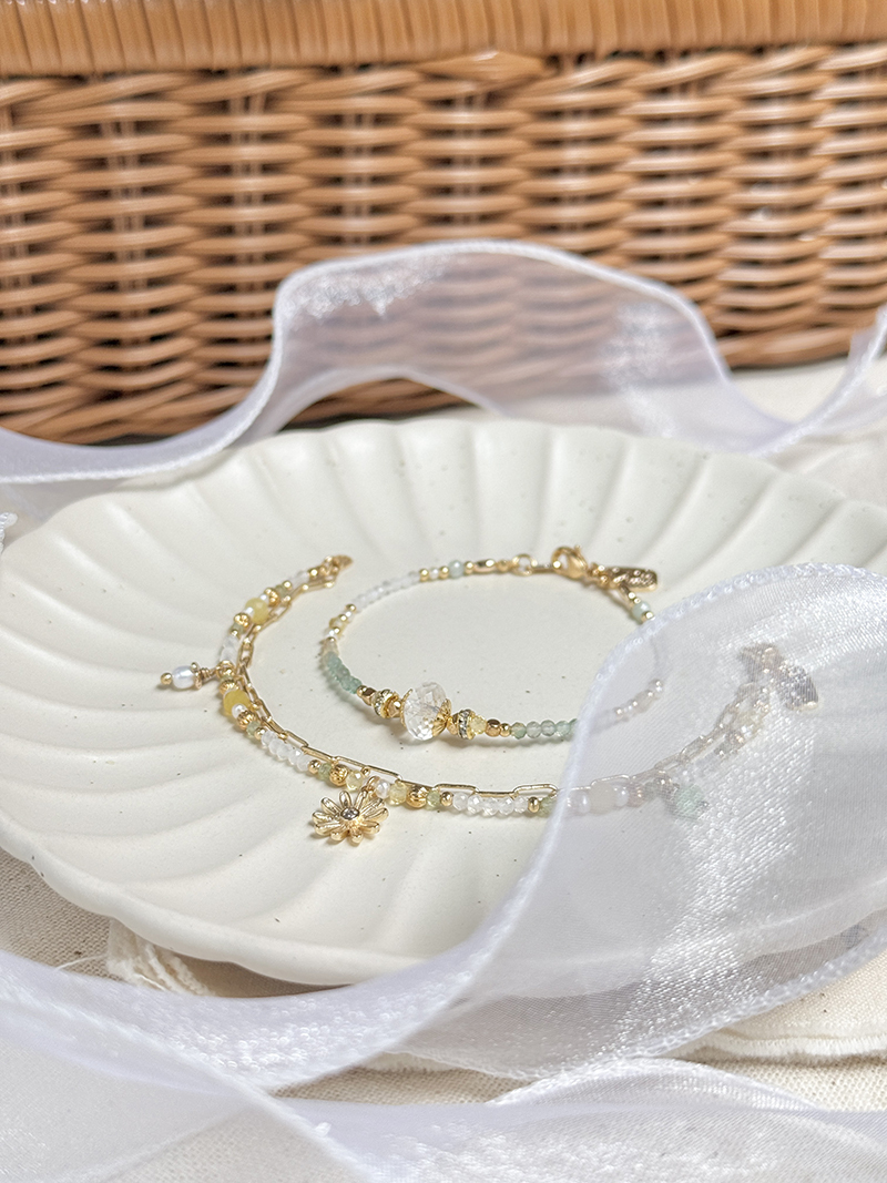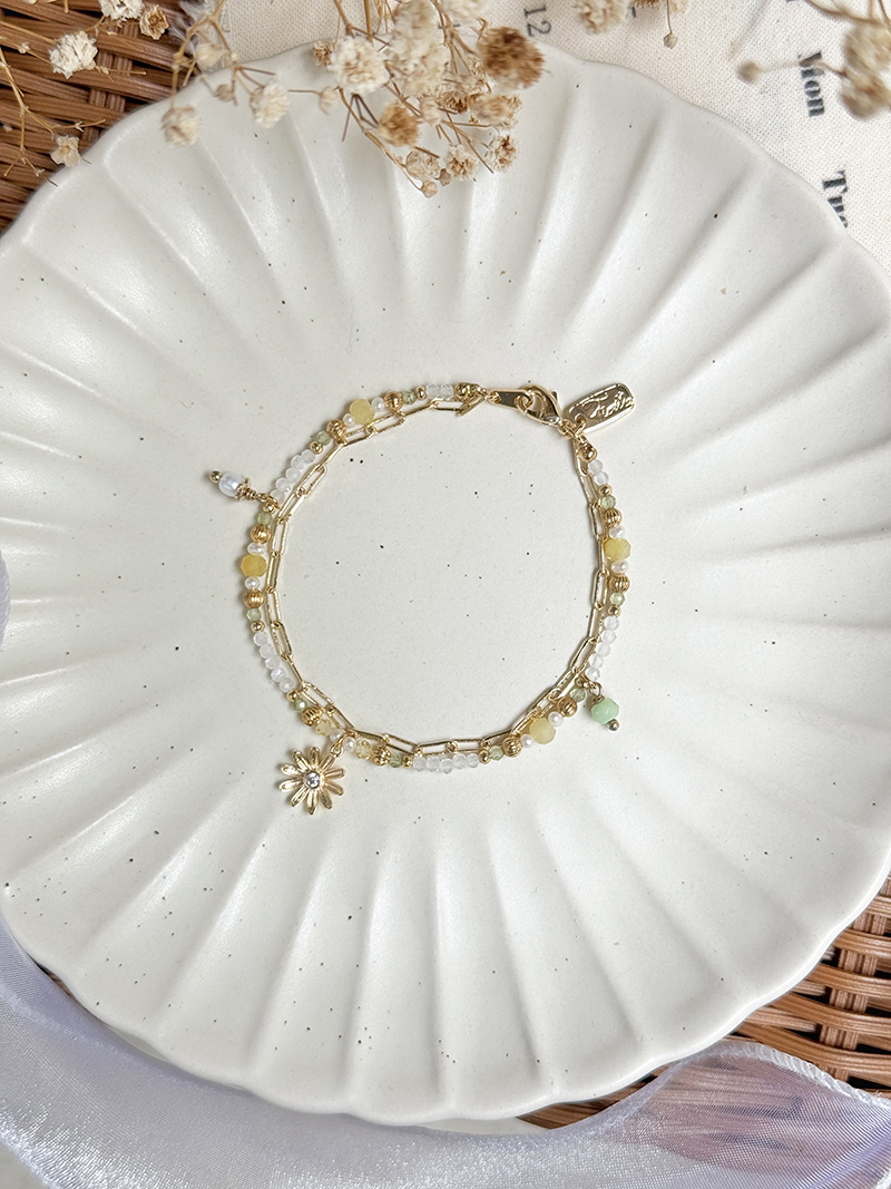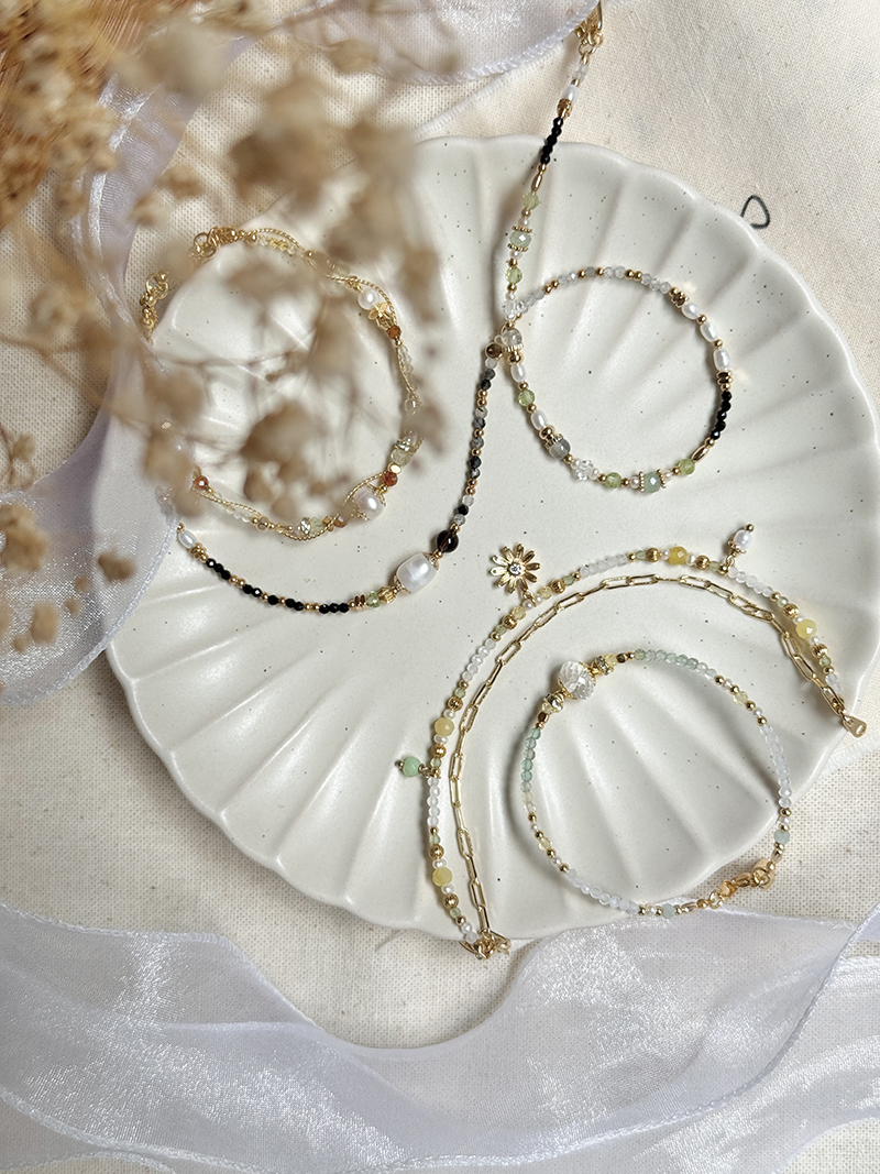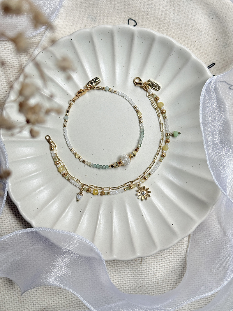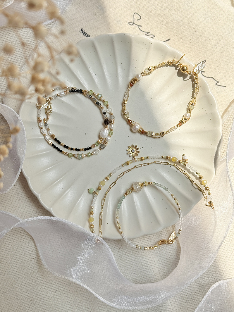 黃蛋白石、淡水珍珠、月光石、橄欖石、玉、黃銅鍍18K金