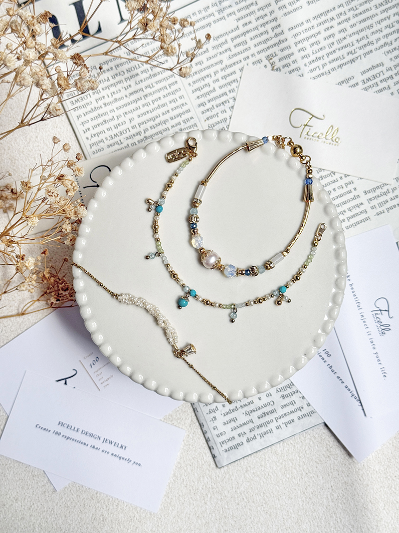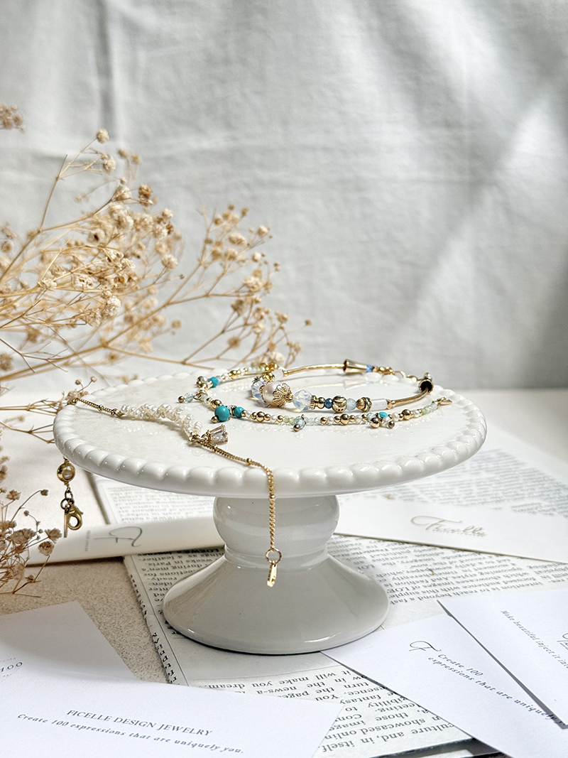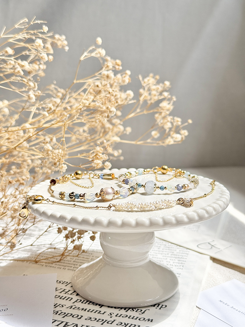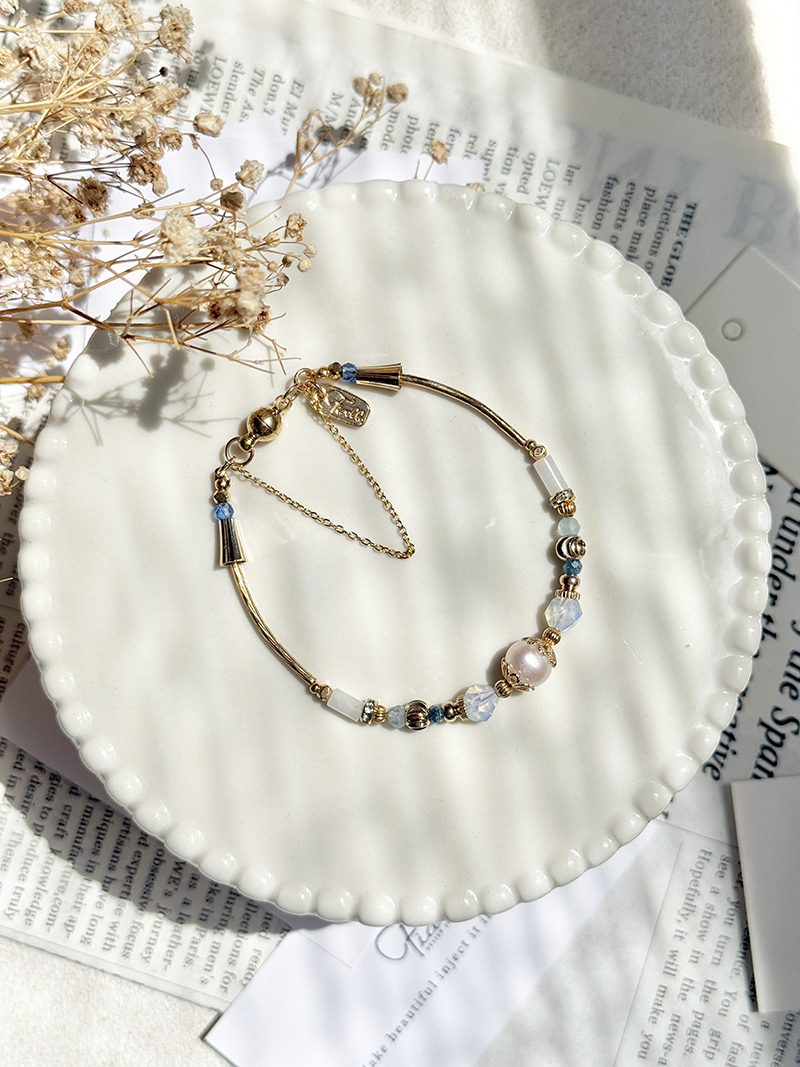 淡水珍珠、蛋白石、藍鋯石、海藍寶、白玉、托帕石、黃銅鍍18K金