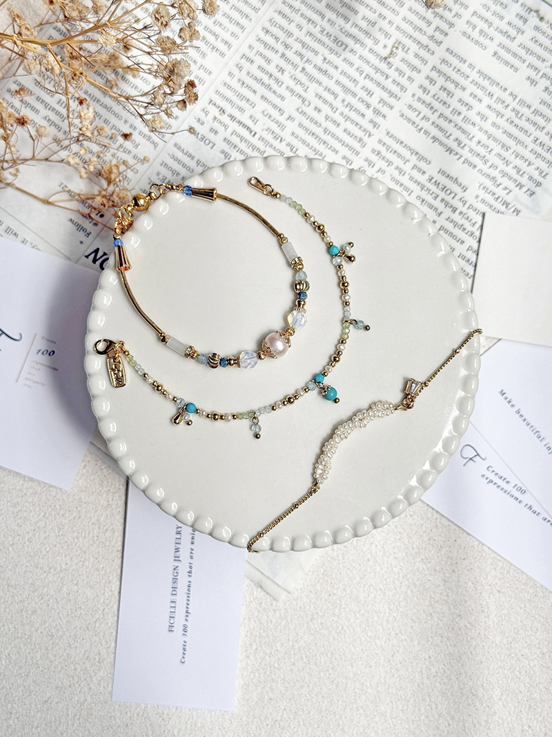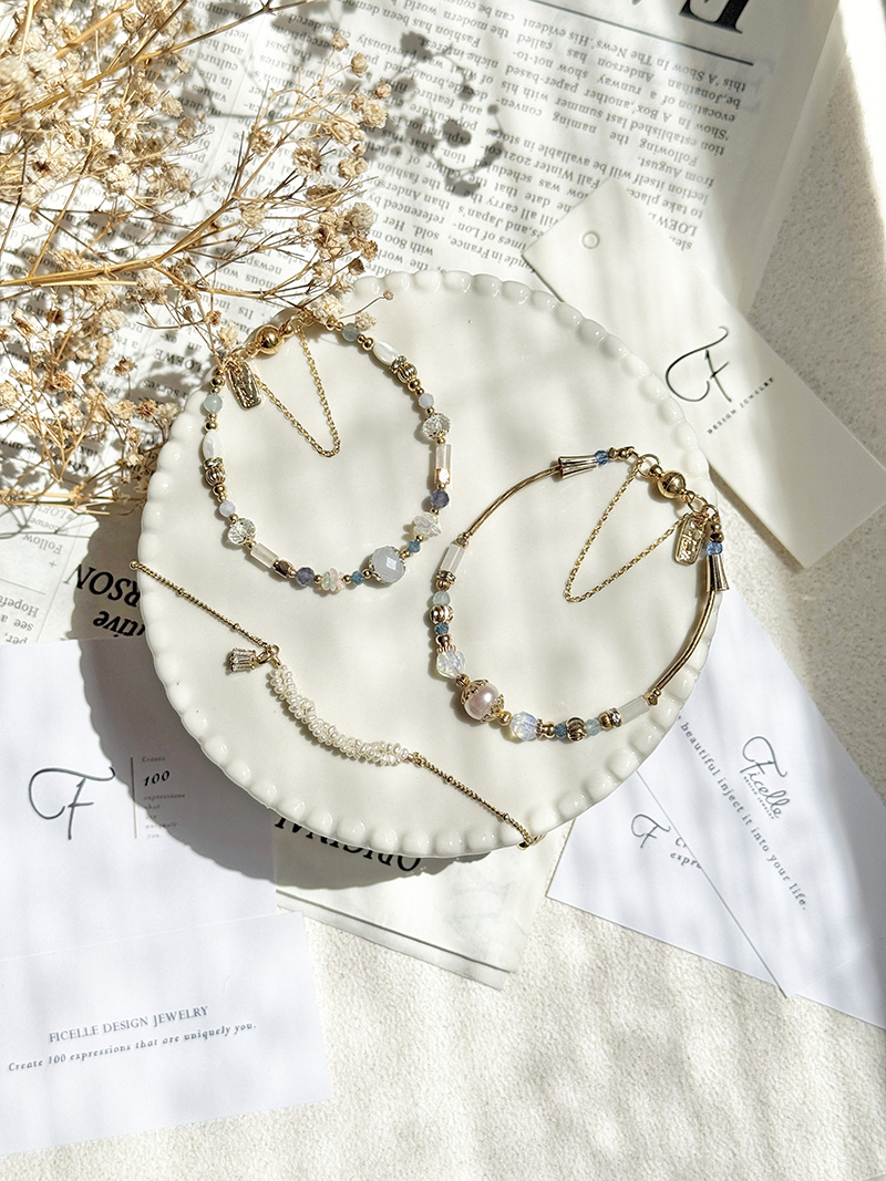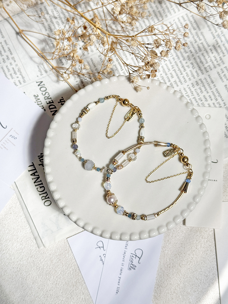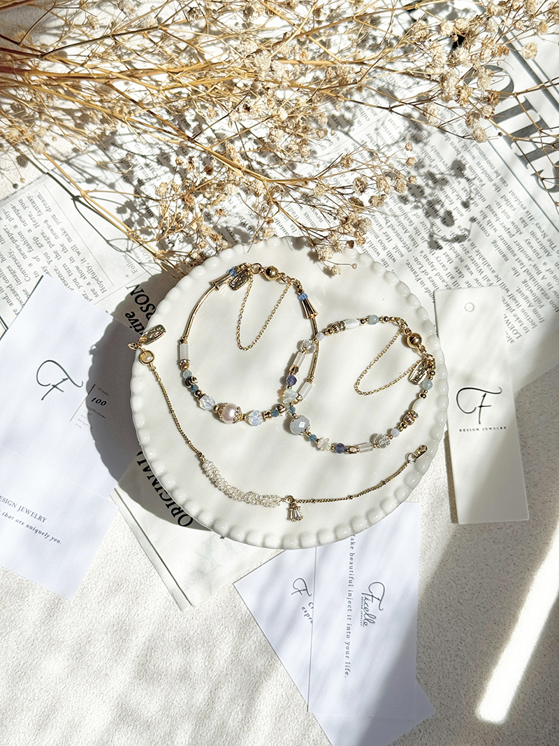 淡水珍珠、蛋白石、藍鋯石、海藍寶、白玉、托帕石、黃銅鍍18K金