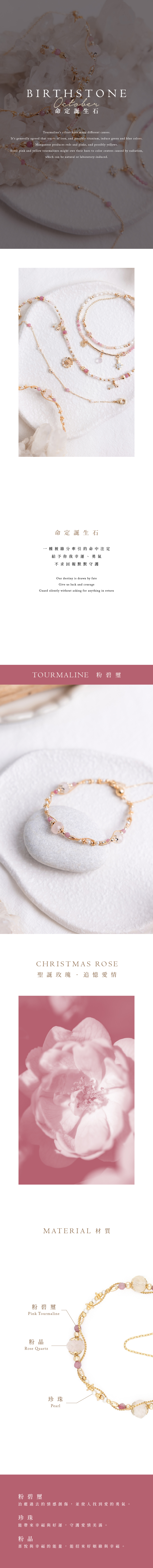 粉碧璽、粉晶、淡水珍珠、黃銅鍍18K金