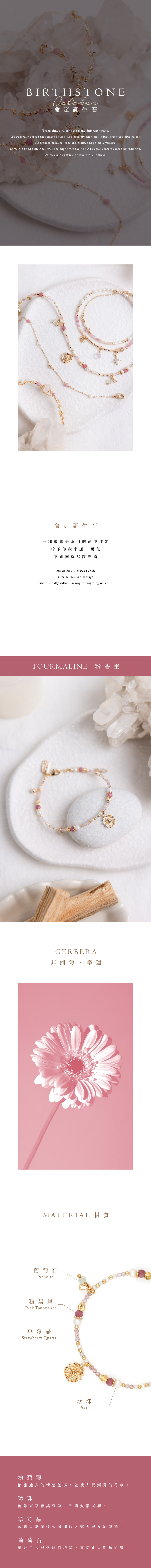 粉碧璽、草莓晶、淡水珍珠、葡萄石、黃銅鍍18K金