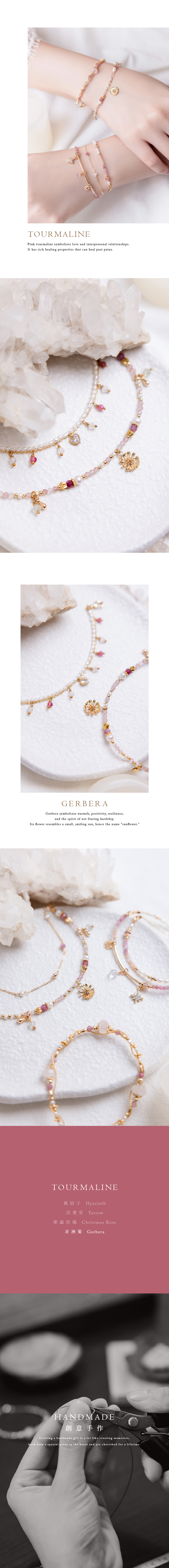 粉碧璽 Tourmaline:改善個人魅力與人際關係,同時也助於找到愛的勇氣。