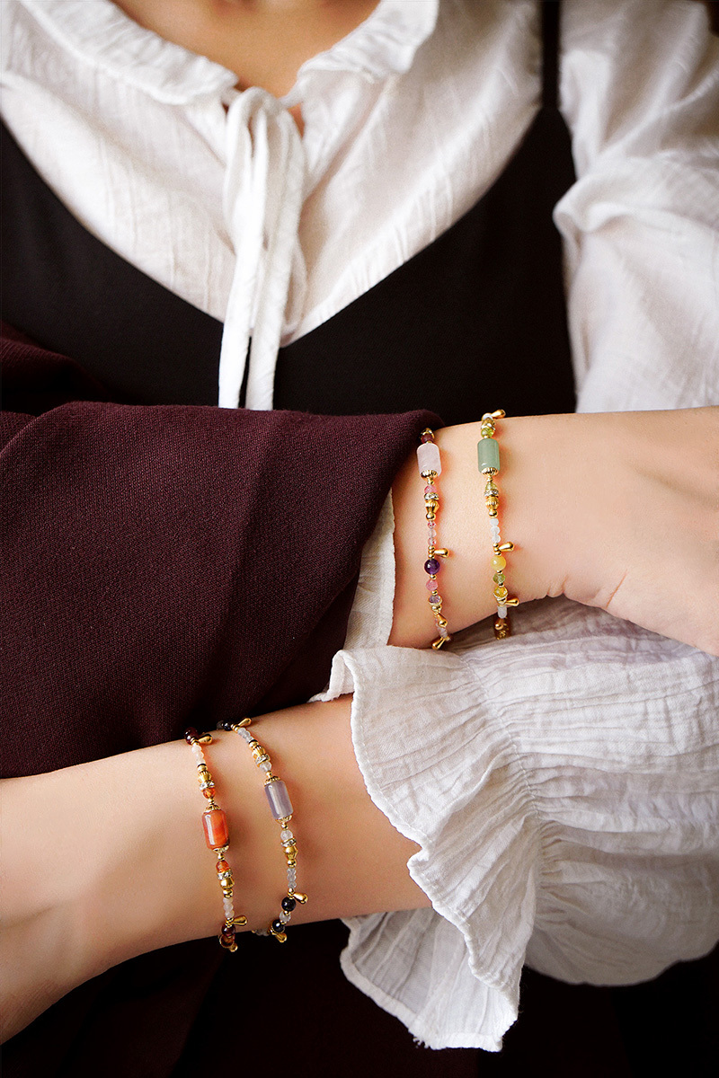 東陵玉、月光石、黃玉、橄欖石、黃銅鍍18K金