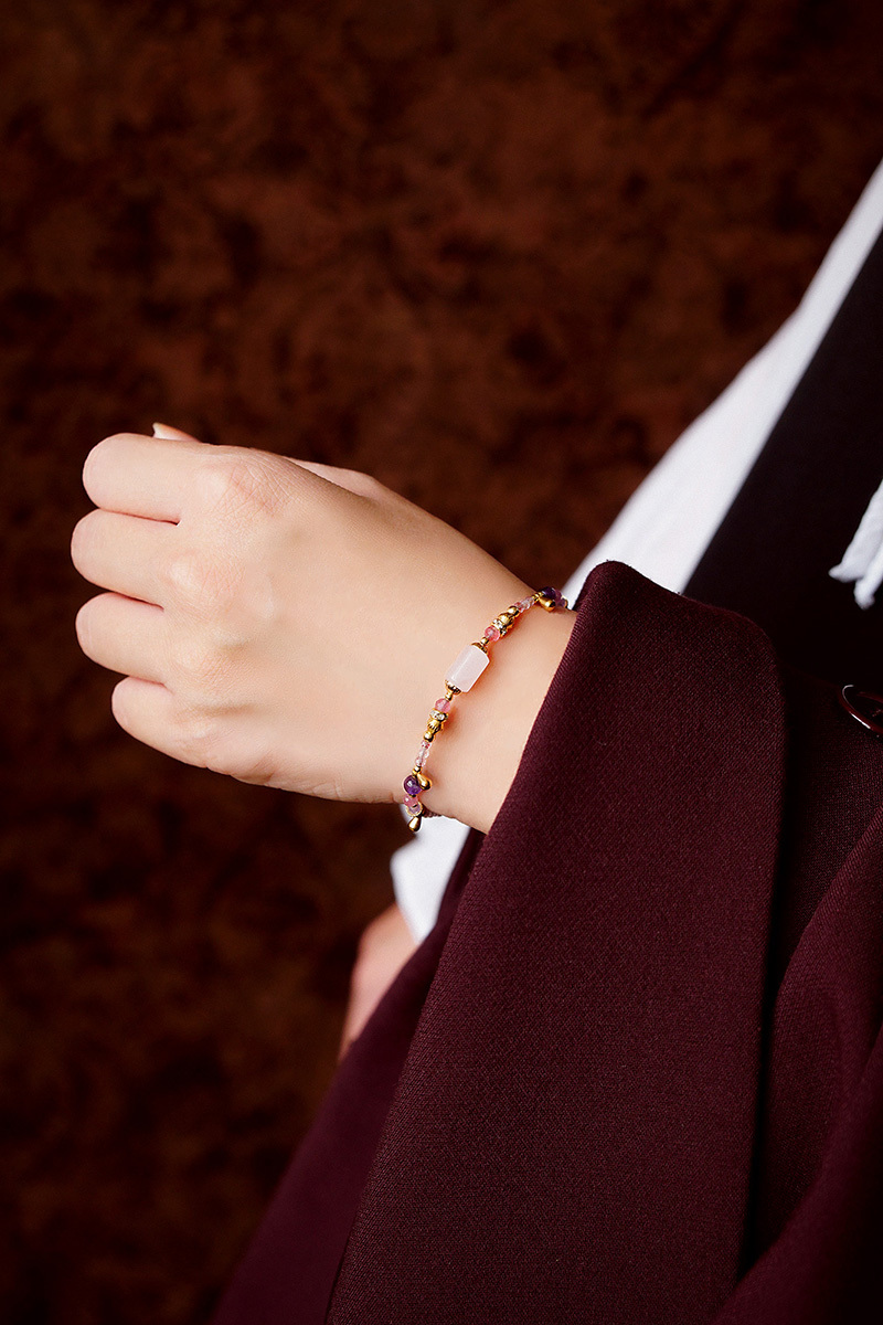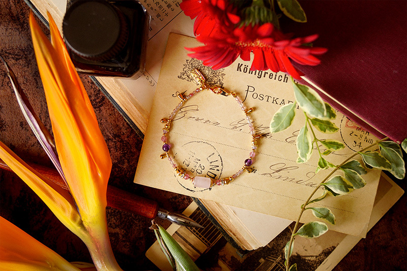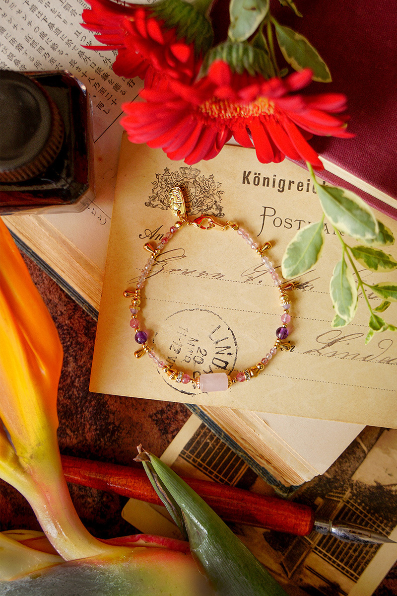 粉晶、草莓晶、紫水晶、黃銅鍍18K金
