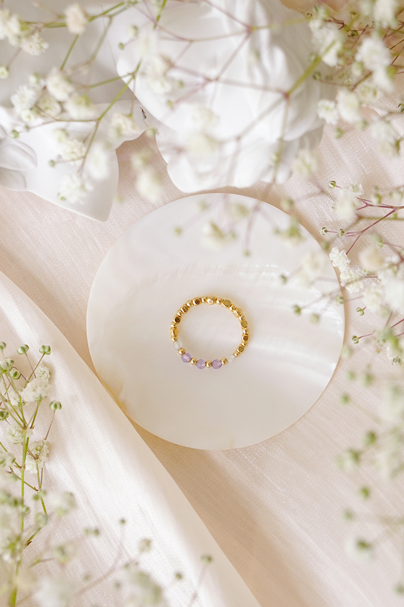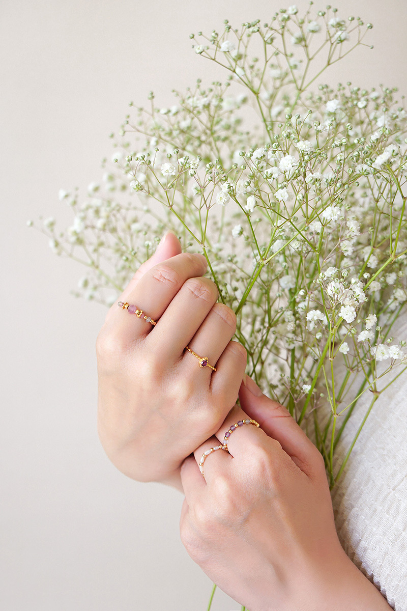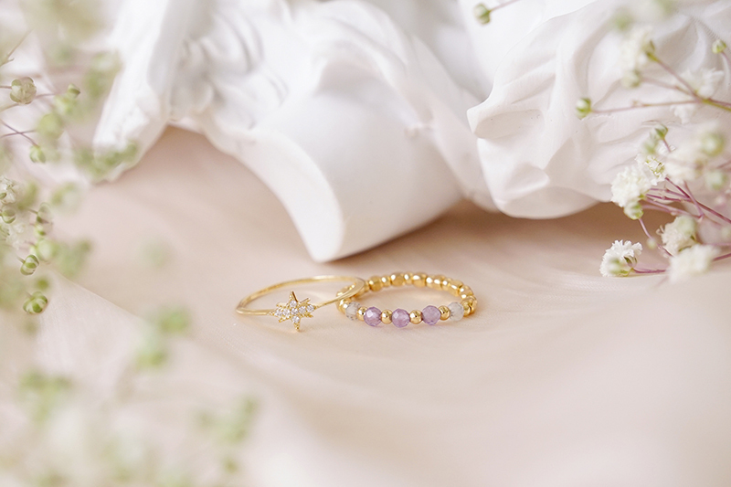 紫水晶、月光石、黃銅鍍18K金