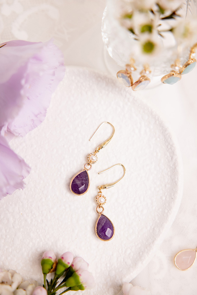 紫水晶、淡水珍珠、黃銅鍍18K金