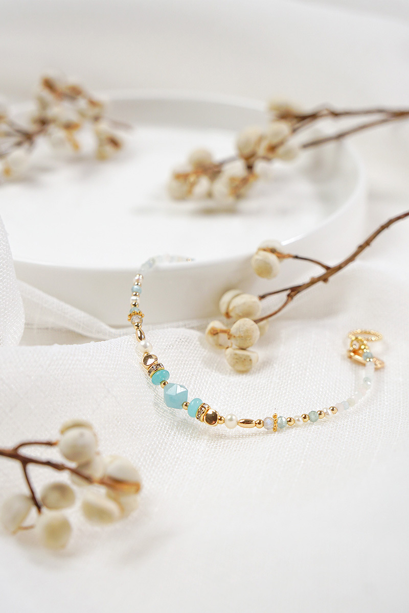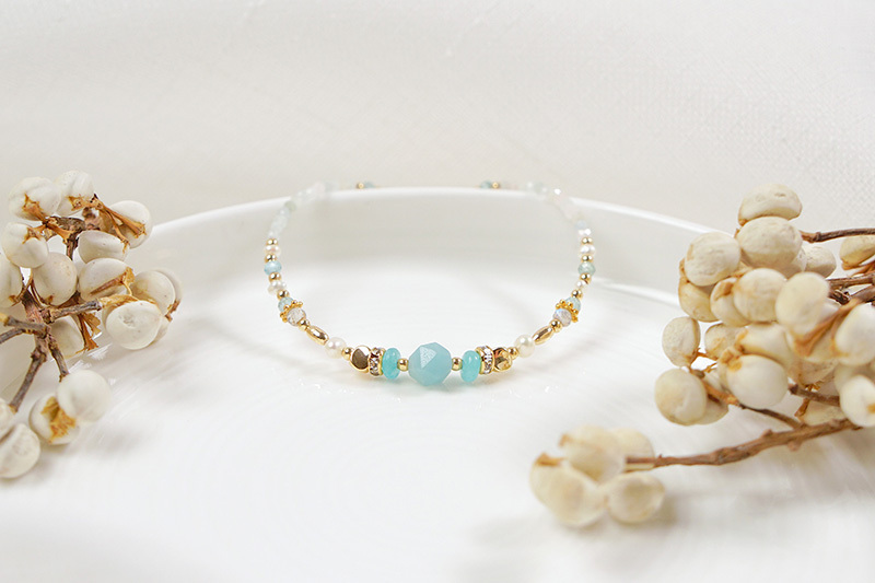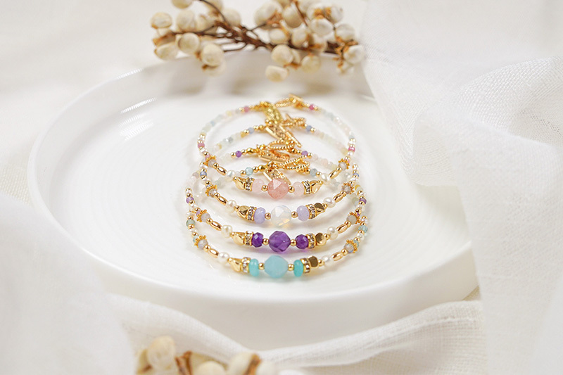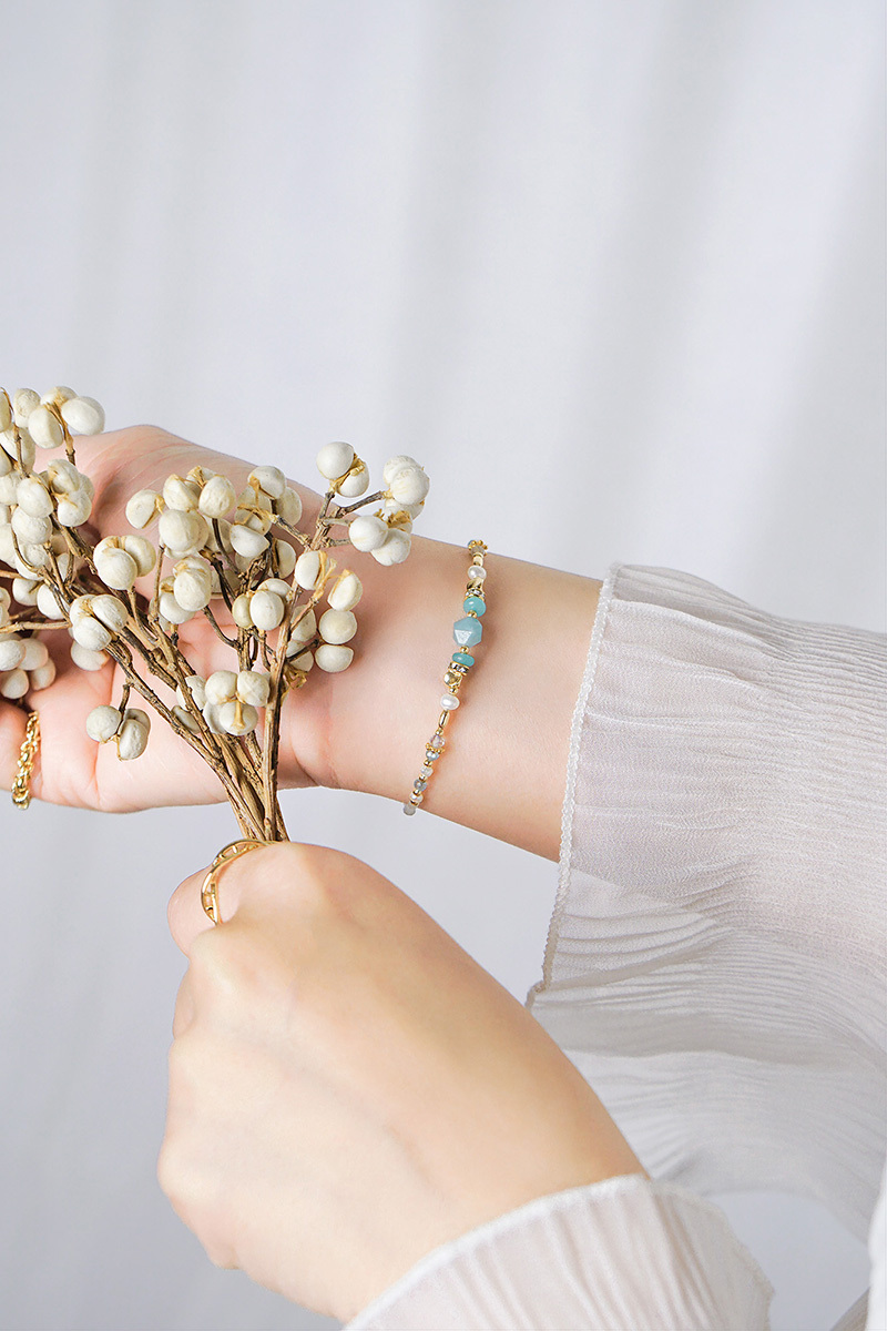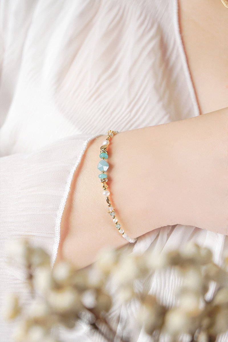 天河石、摩根石、拉長石、淡水珍珠、磷灰石、黃銅鍍18K金