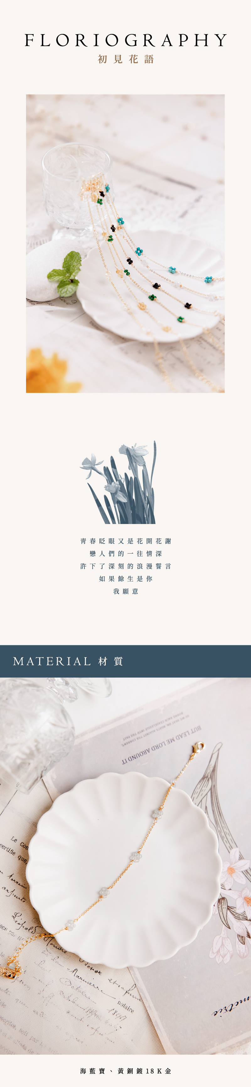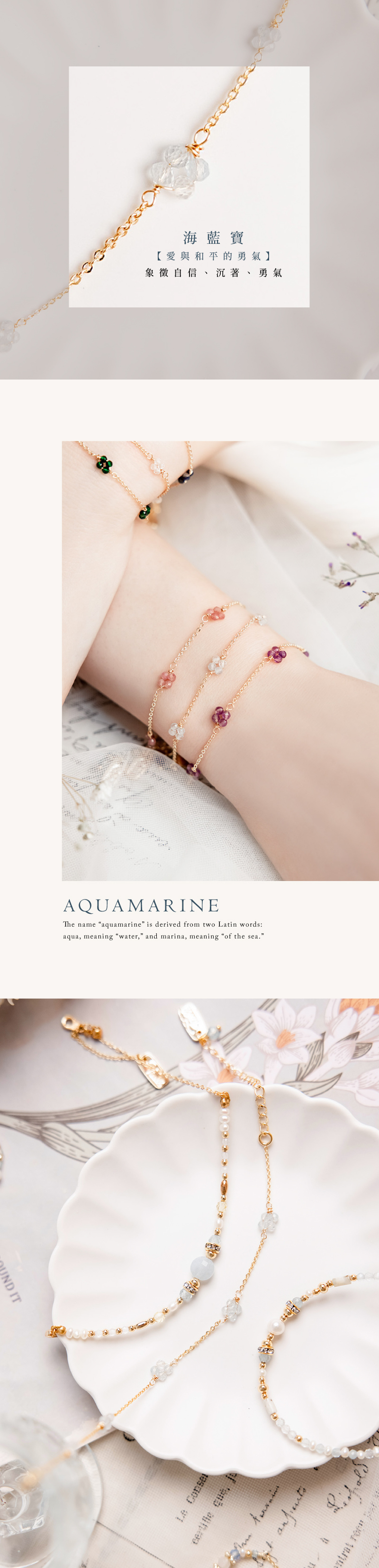 海藍寶 Aquamarine:被稱為勇敢者之石,象徵「沉著」與「勇敢」,可增強表達能與說服力,正確的表達自我。