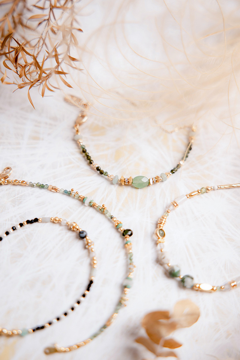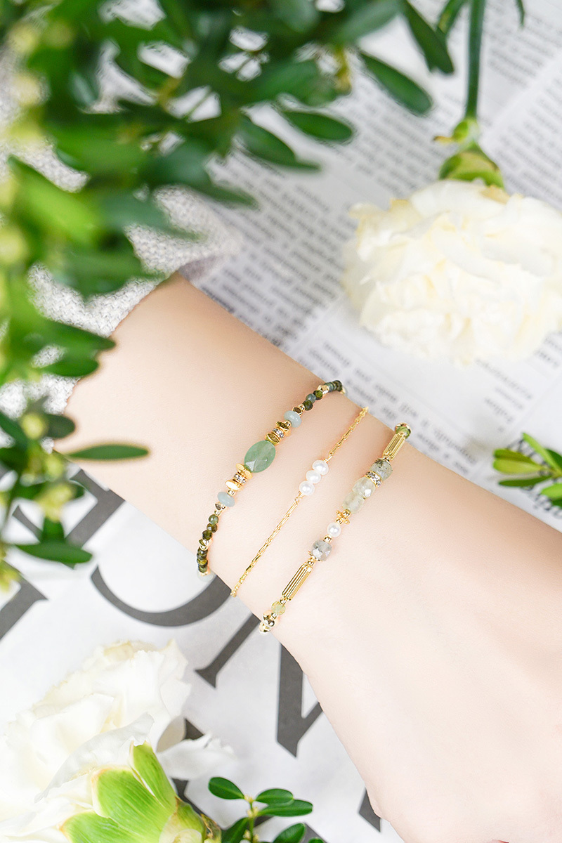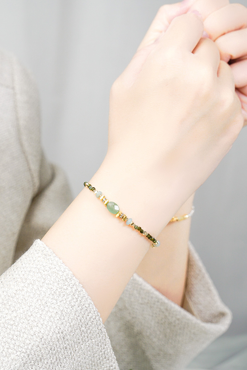 東陵玉、天河石、綠碧璽、14K包金微鑲鋯石滾鑽、黃銅鍍18K金