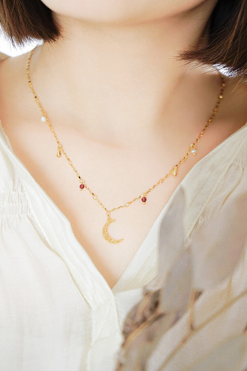 石榴石、淡水珍珠、黃銅鍍18K金