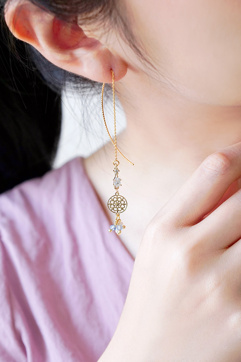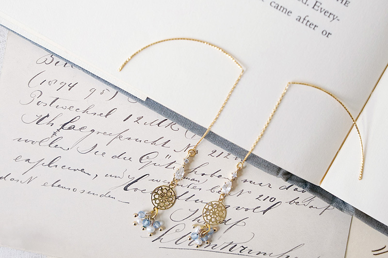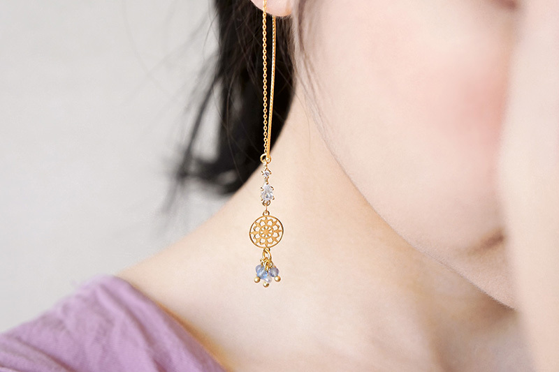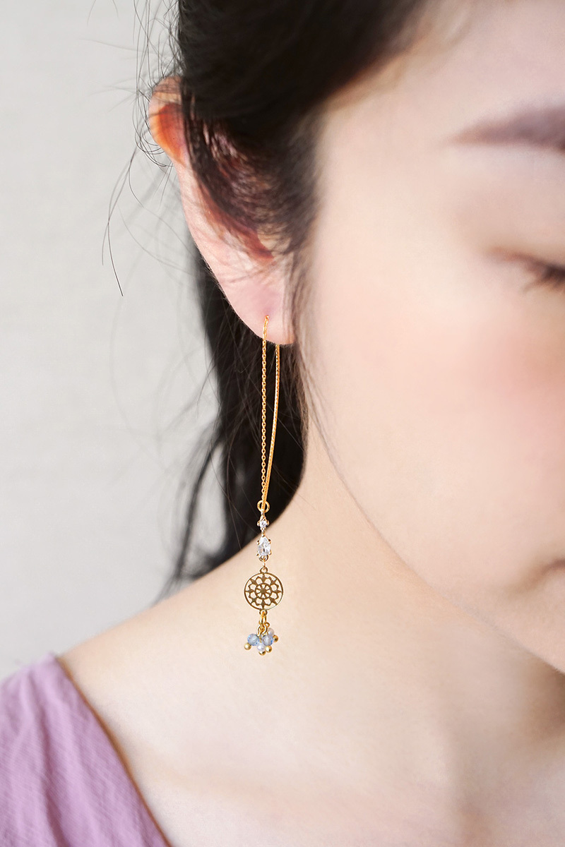 托帕石、白色鋯石、淡水珍珠、黃銅鍍18K金